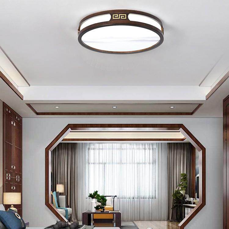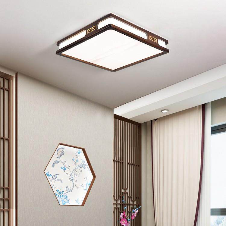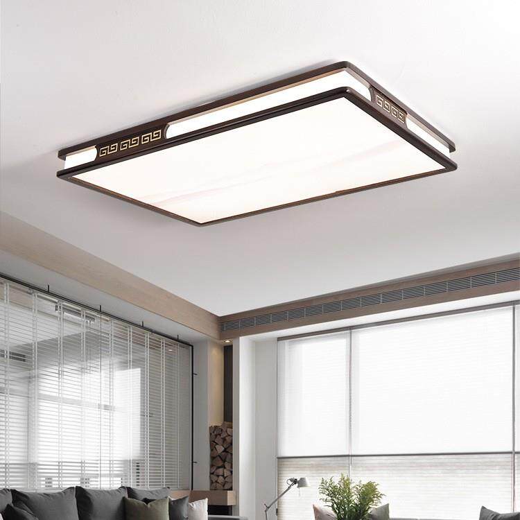 实木新中式客厅灯吸顶灯 led超薄长方形厅灯橡木灯饰胡桃木色灯具