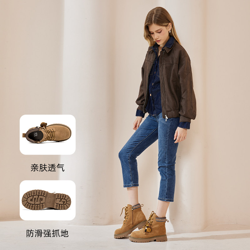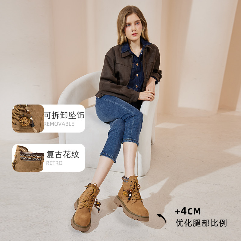 天美意复古英伦风厚底加绒马丁靴女鞋子冬新款休闲短靴皮靴时装靴