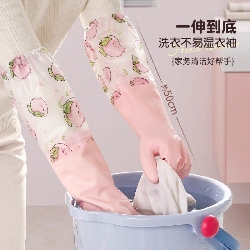 厨房洗碗手套女家用防水耐用洗衣服清洁家务手套加厚加绒橡胶胶皮