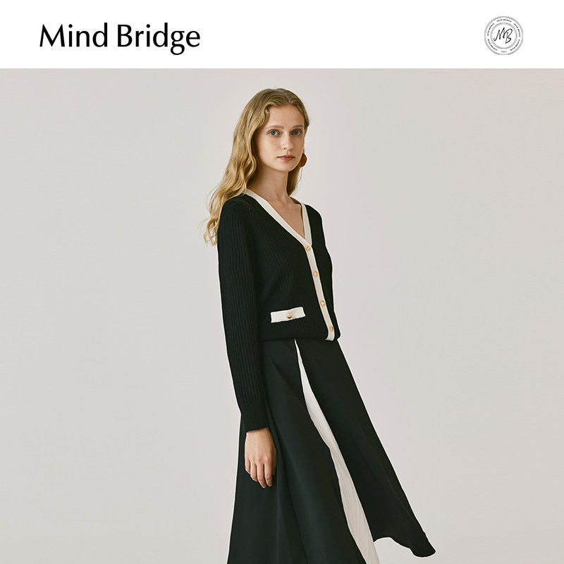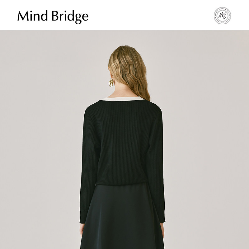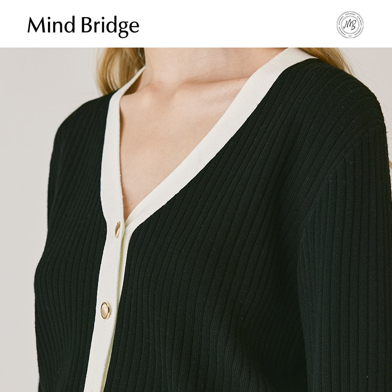 Mind Bridge2025年秋长袖开衫季撞色针织衫女士通勤小香风V领毛衣