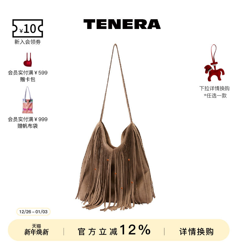 TENERA波嬉系列流苏腋下包水桶包斜挎单肩包包女款2025新款通勤包