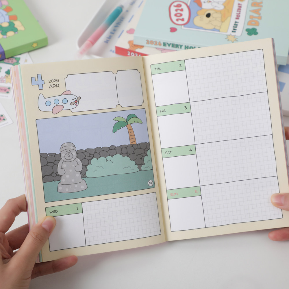 韩国7321可爱卡通2026日程本周计划PVC胶套彩页手账记事日记本ins