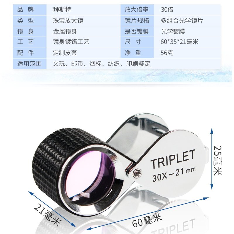 拜斯特珠宝放大镜看钻石腰码gia高清30倍防滑triplet古董玉鉴定