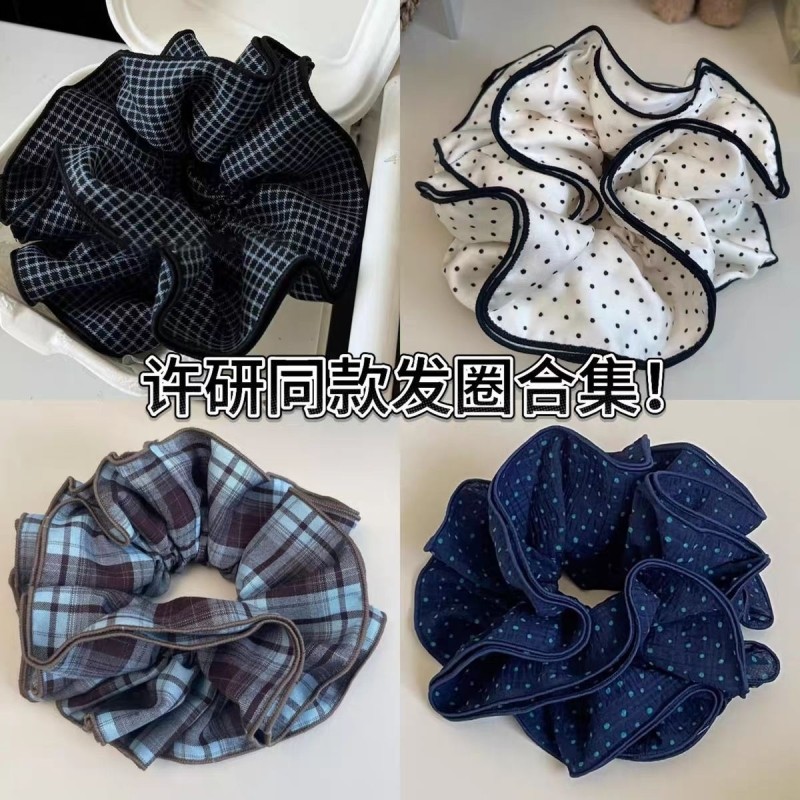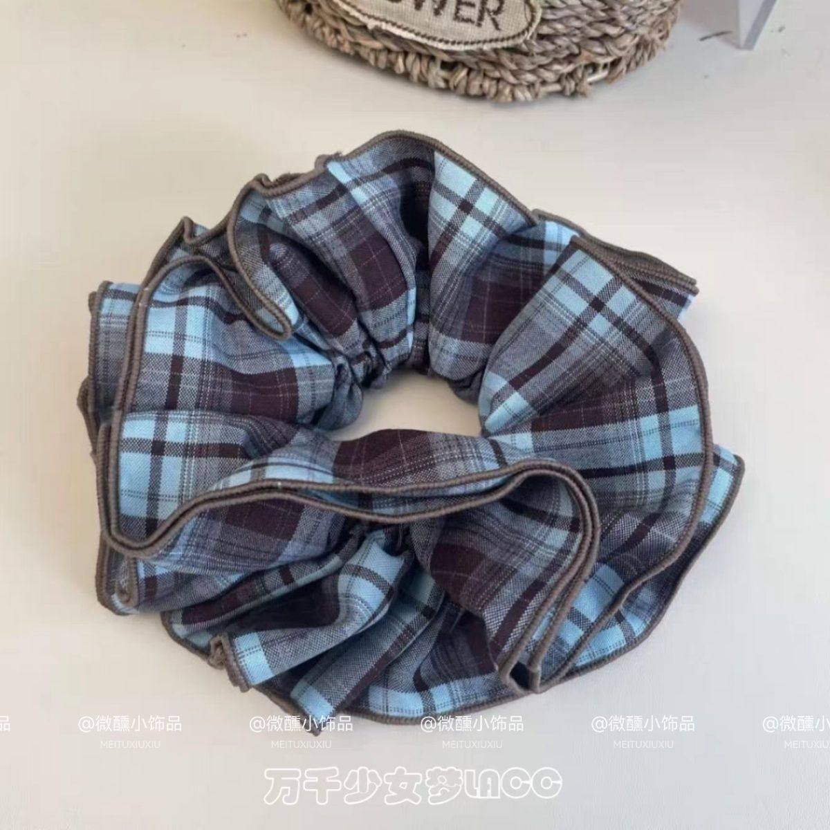 韩版格纹大肠发圈网红2025新款扎头发头花丸子头发绳高马尾头绳女