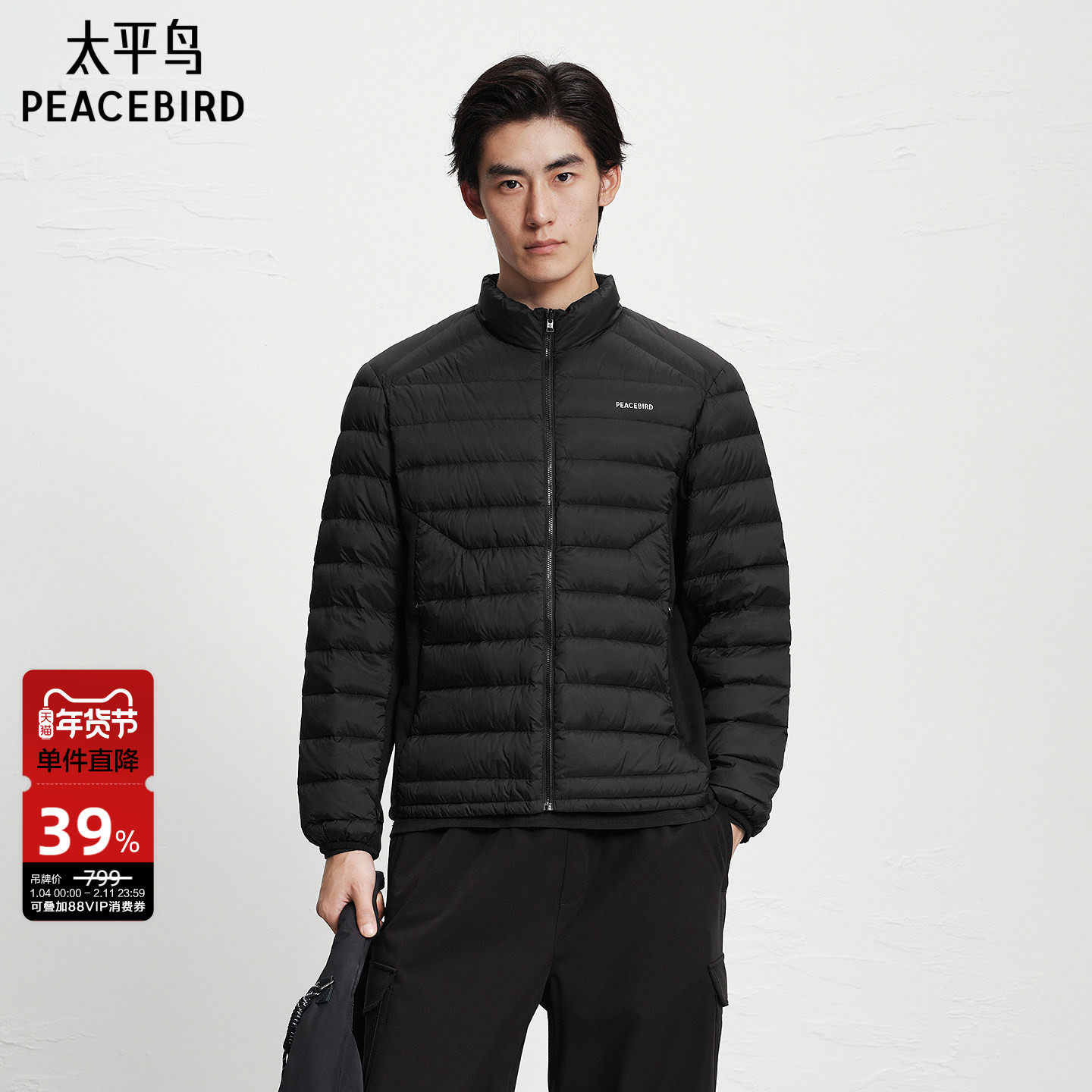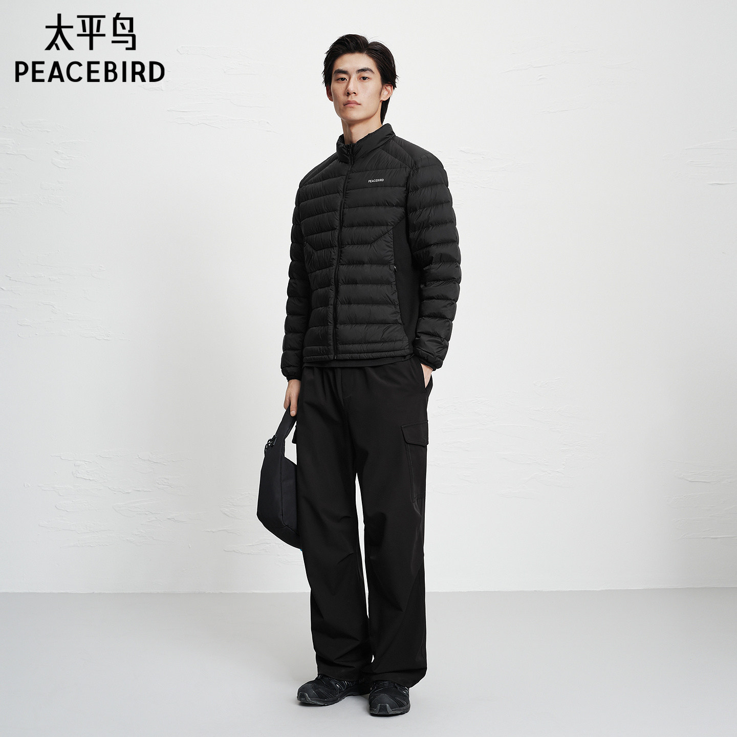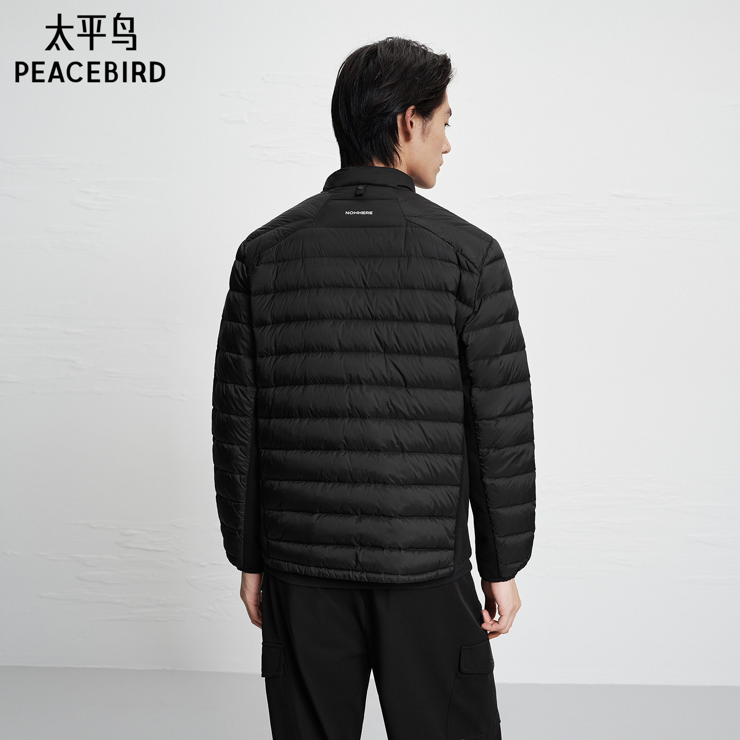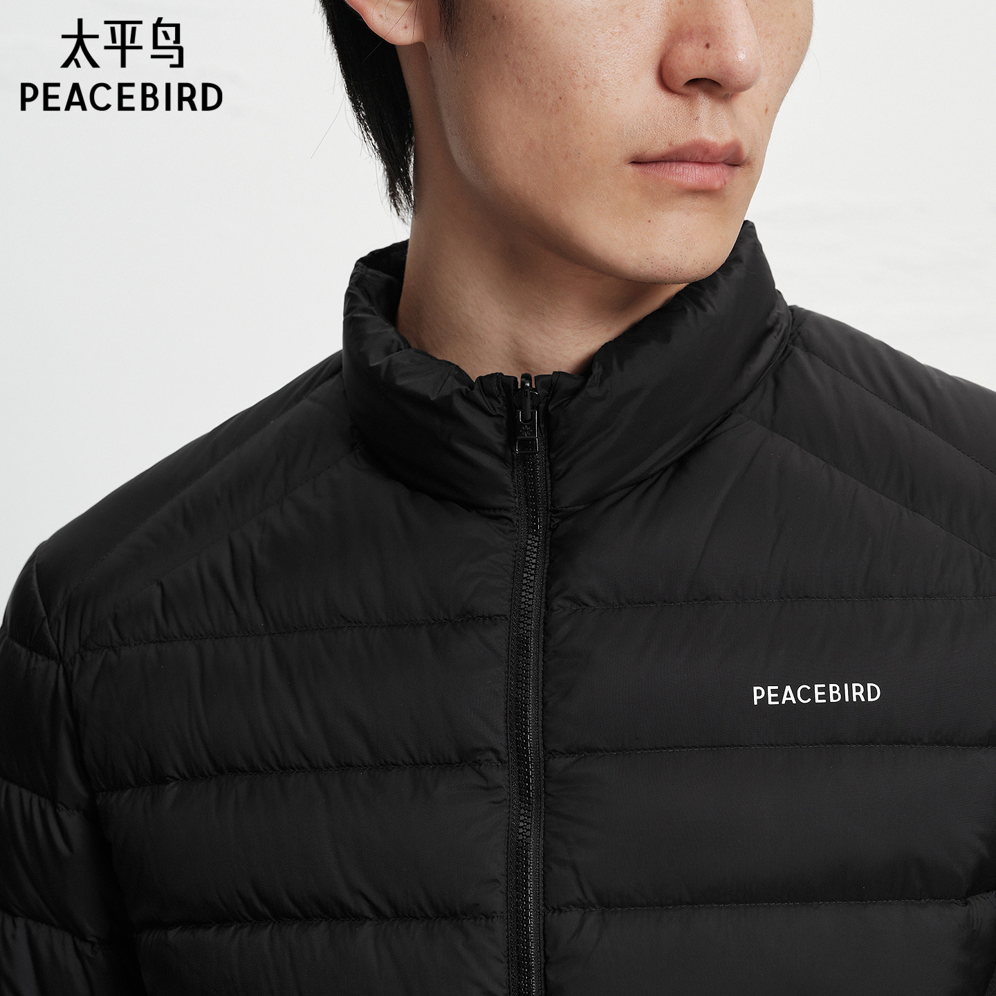 太平鸟男装 黑色羽绒服冬季保暖防寒服轻薄立领羽绒外套