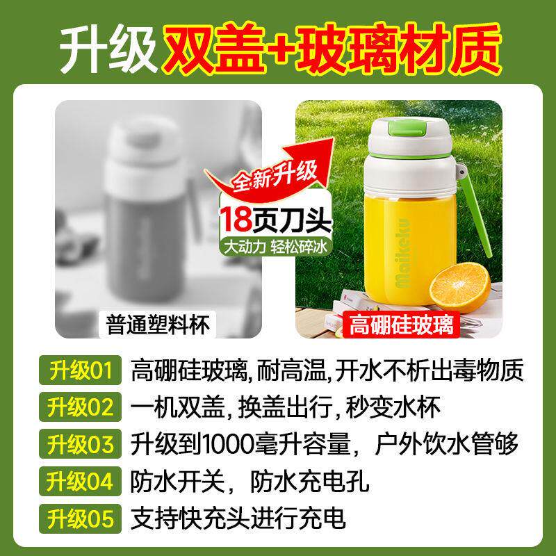 便携式玻璃榨汁机小型家用多功能炸果汁机无线电动榨汁杯【厂家】