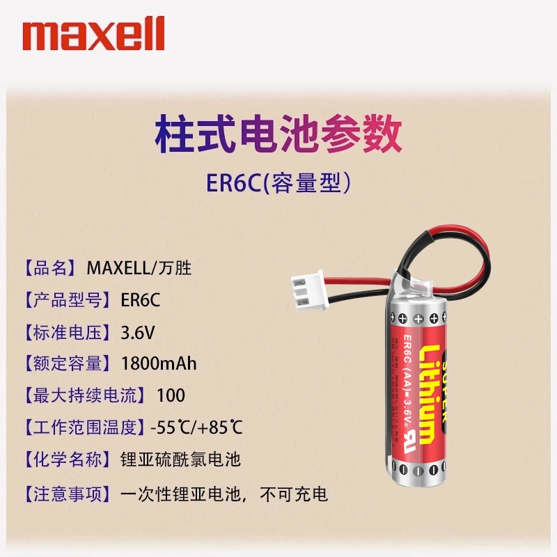 适用MAXELL ER6C AA 3.6V F2-40BL FX1N/FX2N编程器三菱PLC锂电池