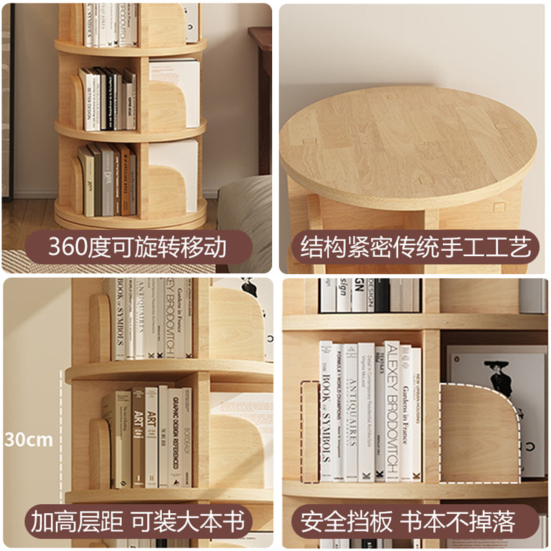 全实木旋转书架360度书柜网红收纳家用客厅可移动儿童落地置物架
