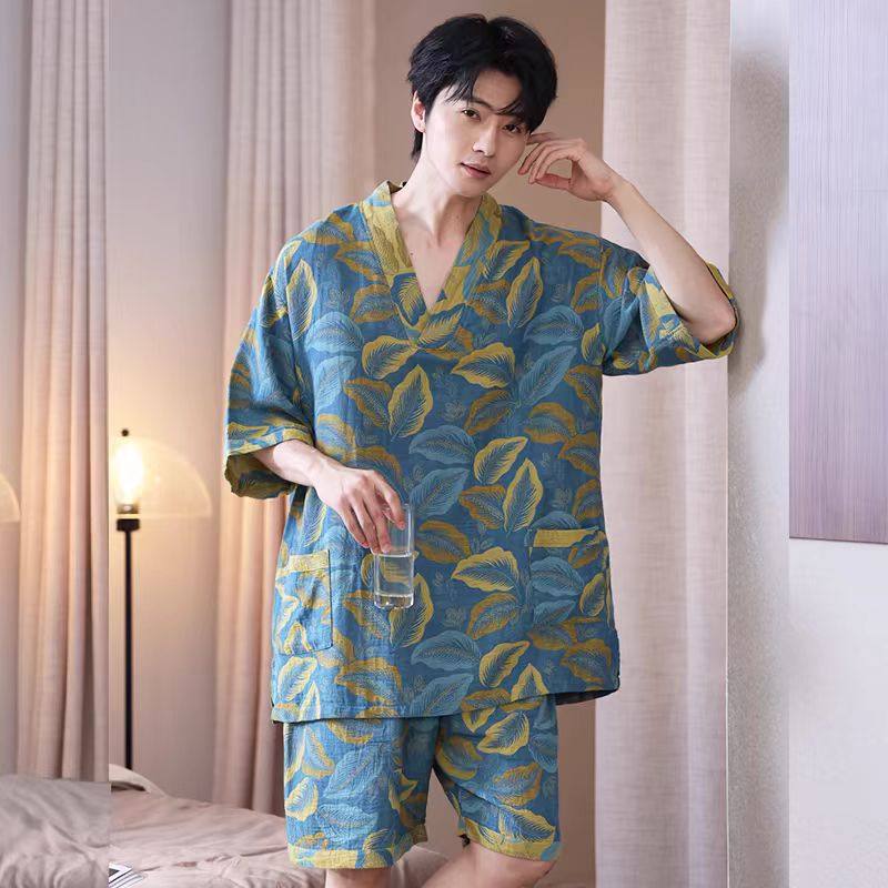 纯棉汗蒸服双层纱女款夏高档睡衣男士浴服全棉情侣家居服足疗按摩