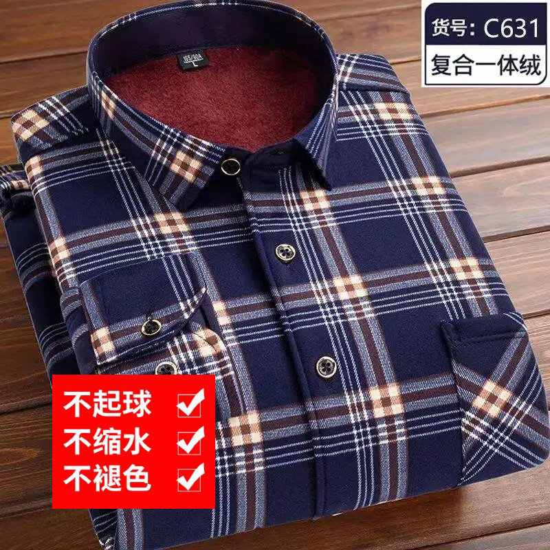 冬季男士加绒加厚保暖衬衫格子长袖中老年爸爸装休闲大码衬衣内搭