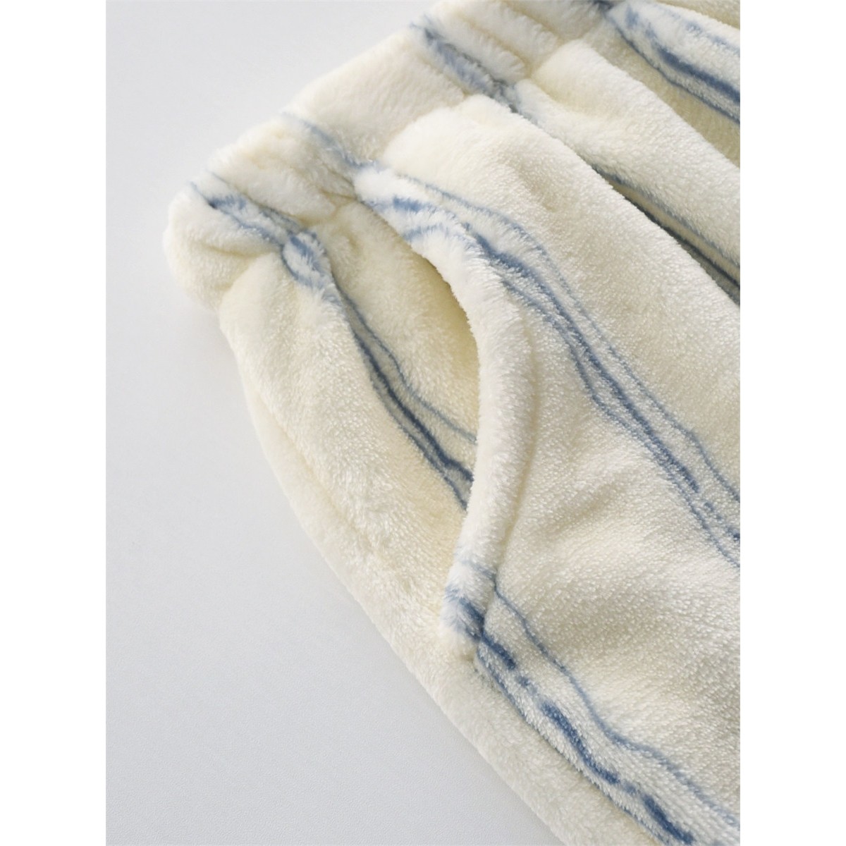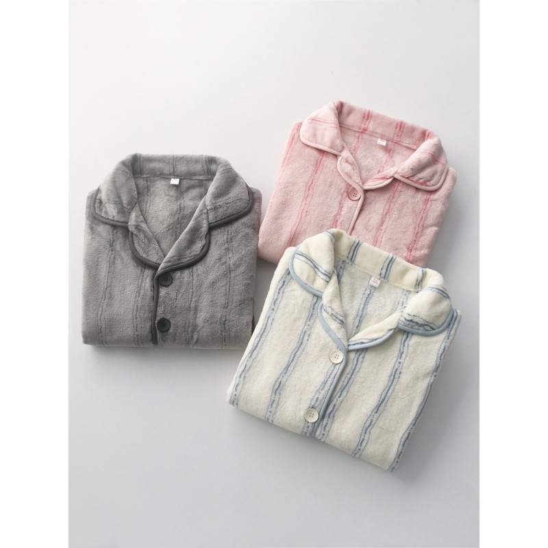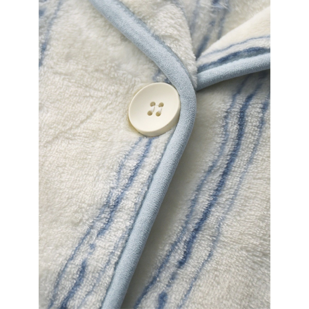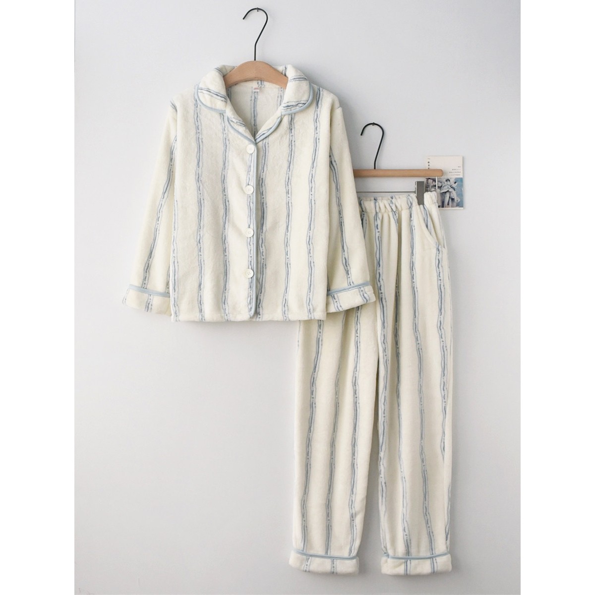 红豆简约条纹睡衣男士女秋冬季法兰绒加厚保暖加绒情侣长袖家居服