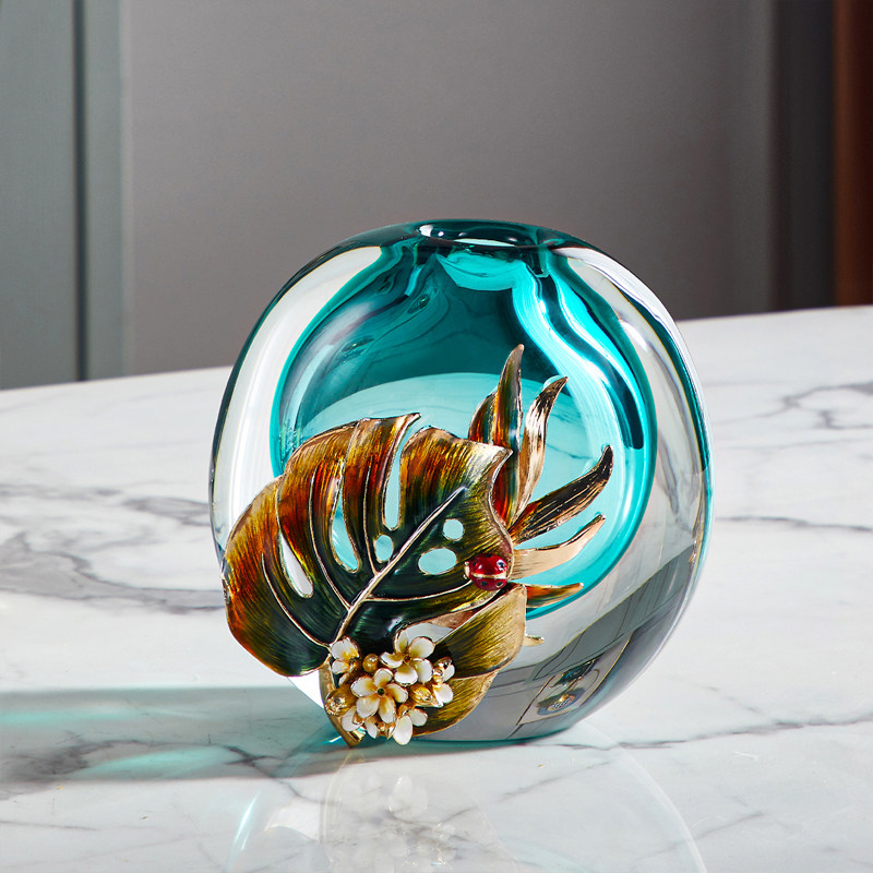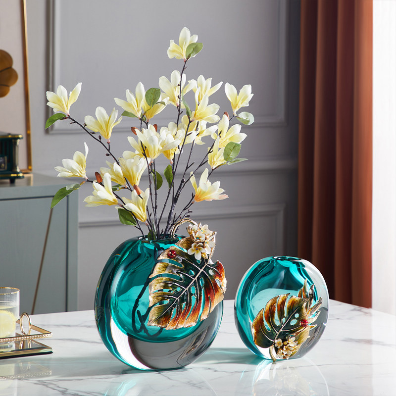 琉璃花瓶摆件客厅插花珐琅彩新中式高级客厅餐厅装饰轻奢高档摆件