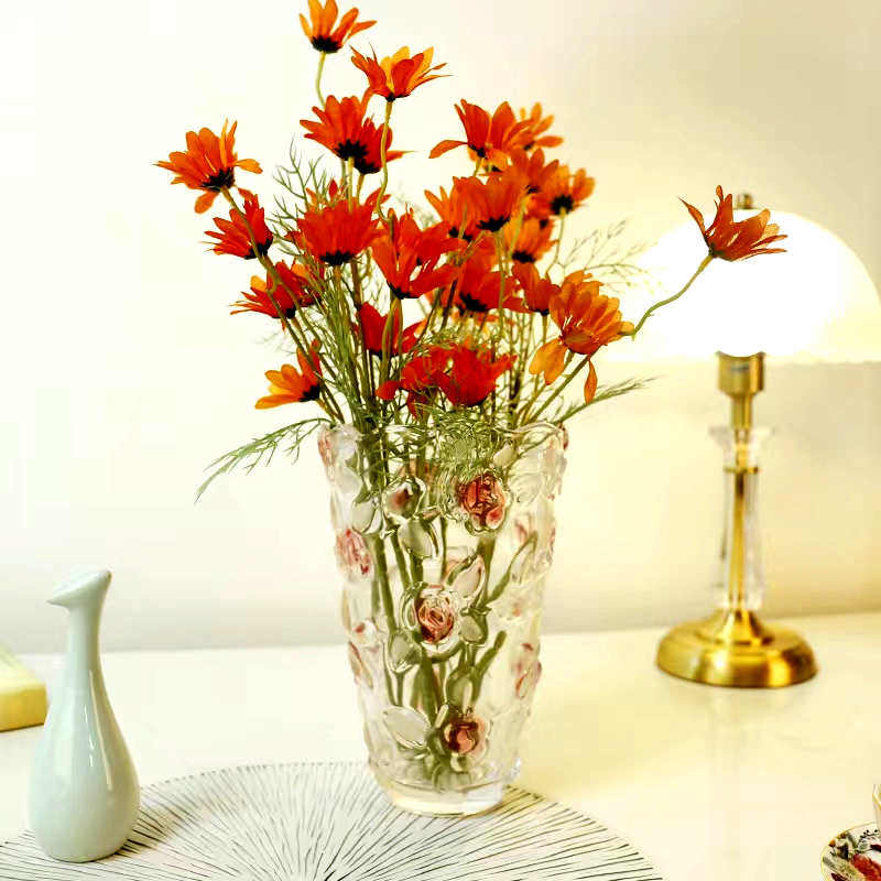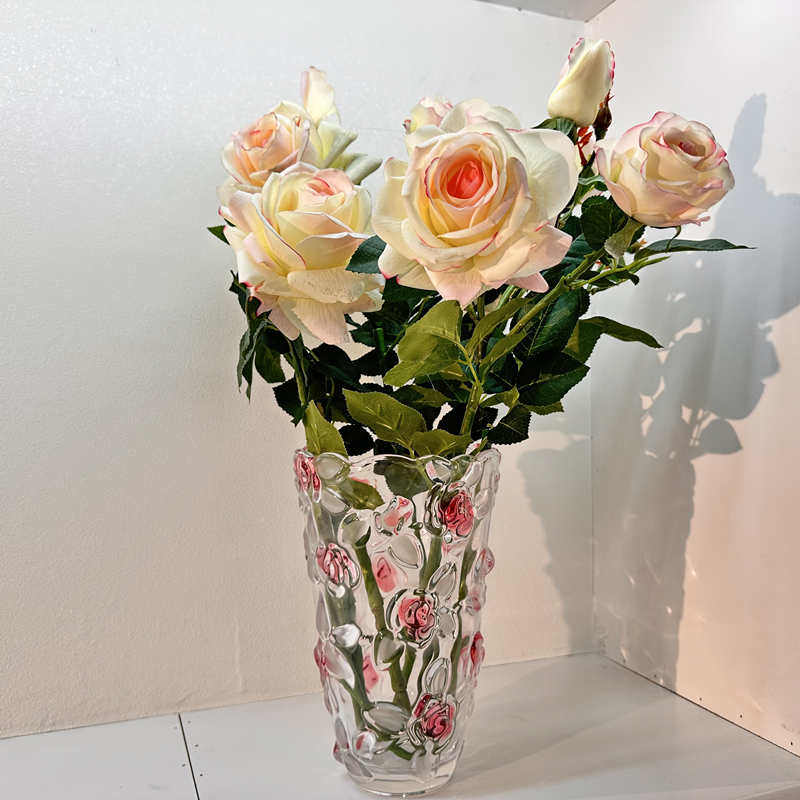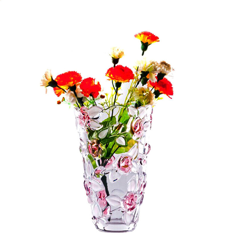 弗莱文茨玫瑰水晶玻璃花瓶富贵竹百合花瓶插花花瓶摆件礼品花瓶