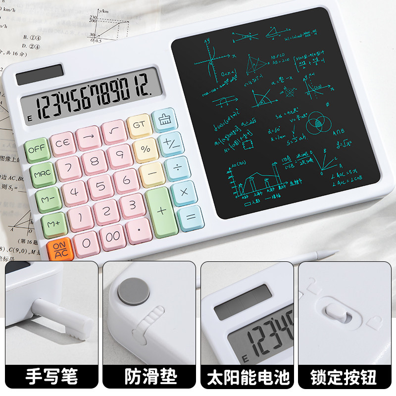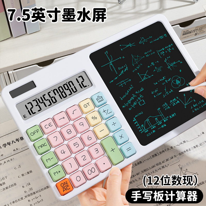 办公计算器带手写板二合一高颜值女神款会计财务商务高级计算机桌面大屏写字板学生草稿记账考试多功能