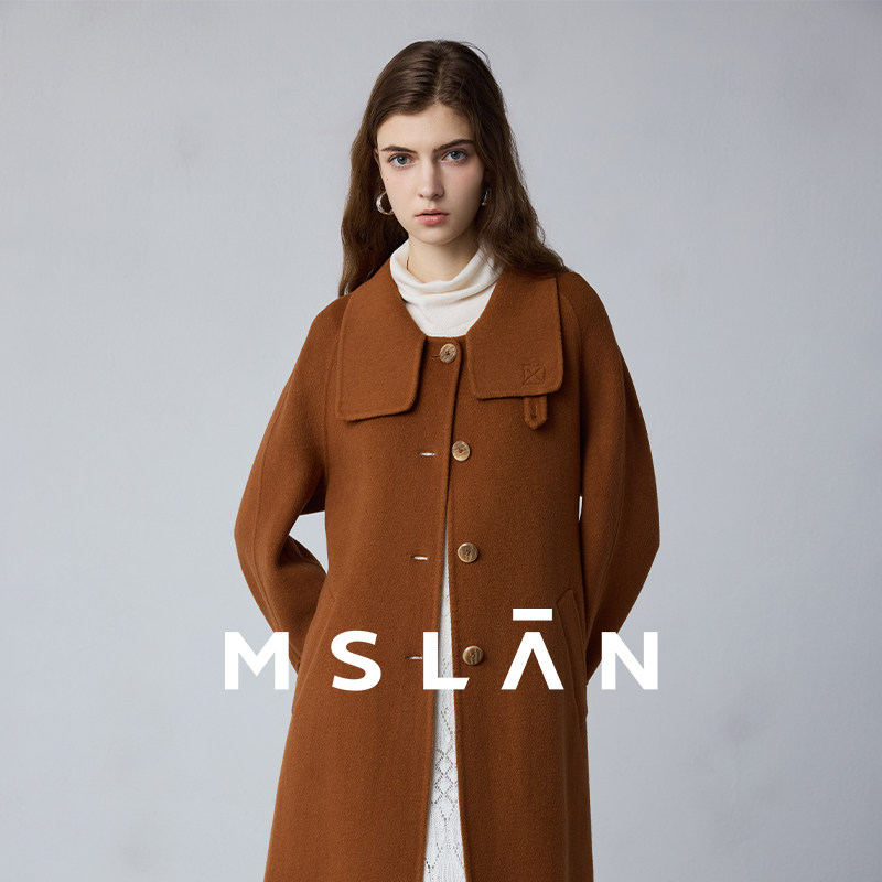枫叶糖/MSLAN冬季立领绑带收腰小个子毛呢外套羊毛混纺双面呢大衣