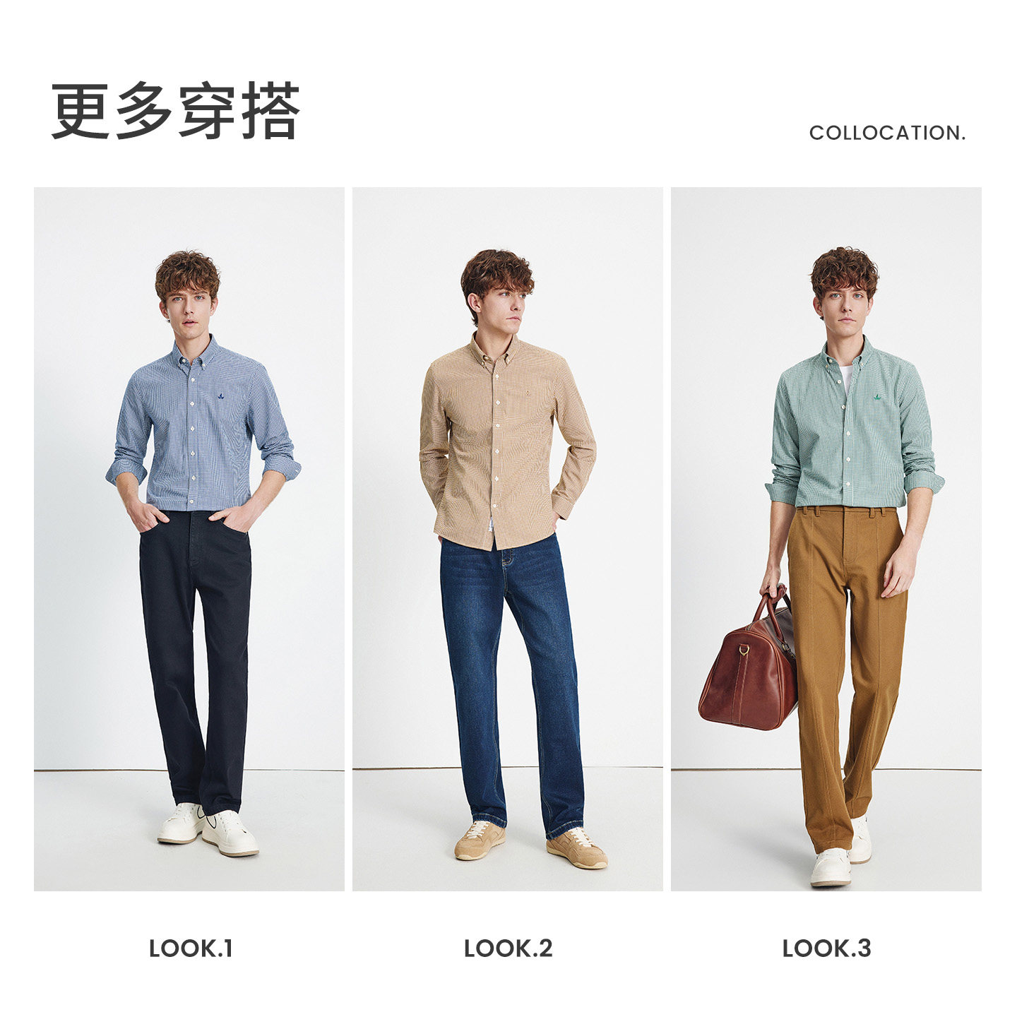 啄木鸟秋季新款男士长袖100%全纯棉磨毛格子衬衫 高级感休闲衬衣