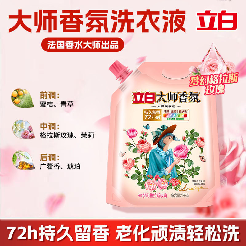 立白洗衣液大师香氛天然1kg玫瑰72h持久留香家用柔顺香水袋装衣物