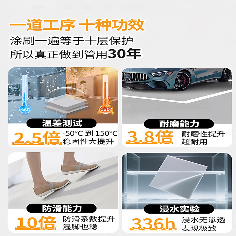 地坪漆水泥地面专用户外水性地面漆自流平改造防水防滑耐磨地板漆