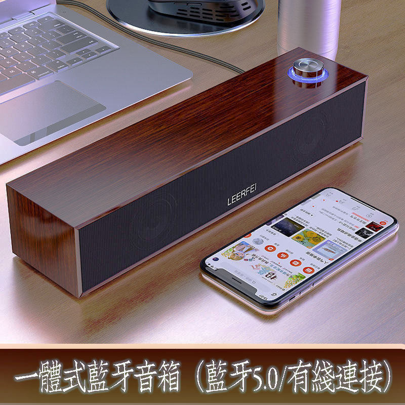 有线多媒体音响电脑蓝牙桌面长条木质音箱迷你重低音炮声霸