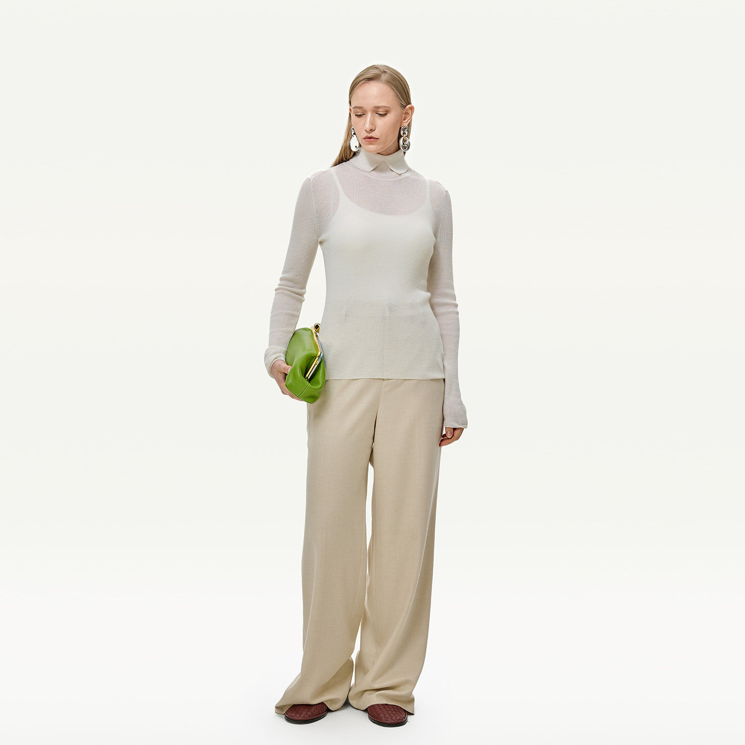 Say Ya【幻】80支精纺羊绒罗纹修身弹力打底衫 高领