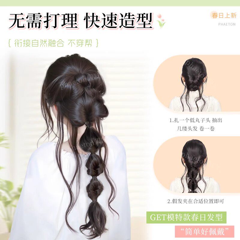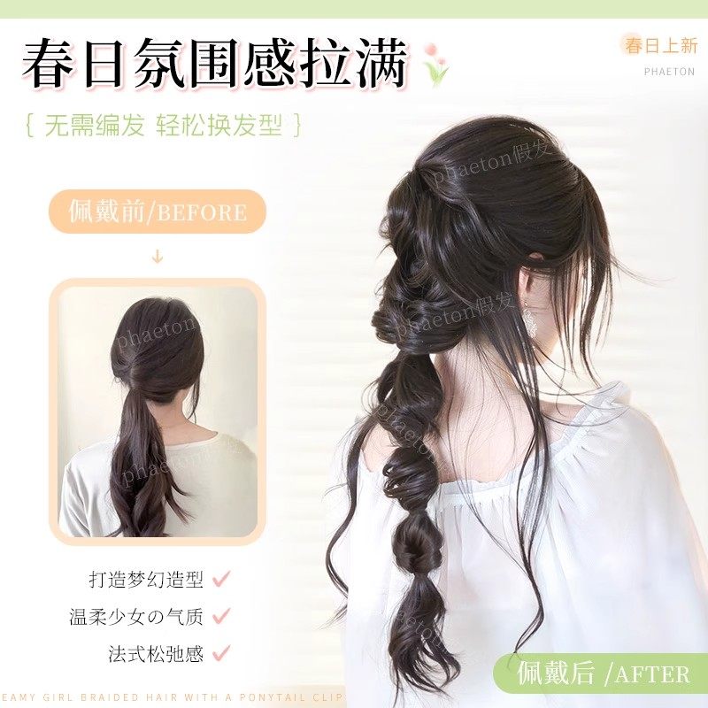 假发辫子女泡泡辫公主头气质蓬松自然夏日抓夹麻花假发长辫子马尾