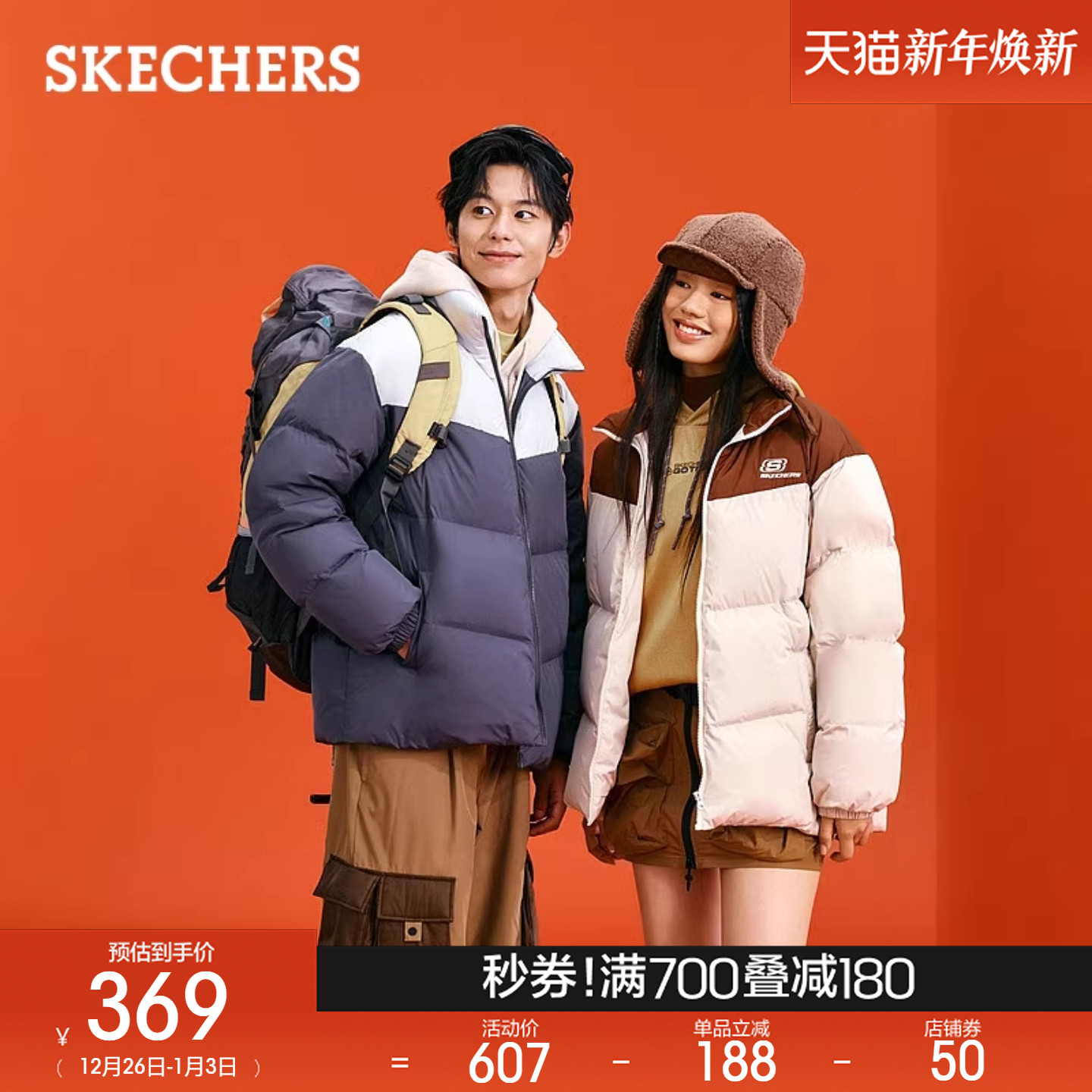 斯凯奇冬季新款男女同款立领面包羽绒服加厚保暖百搭时尚宽松外套