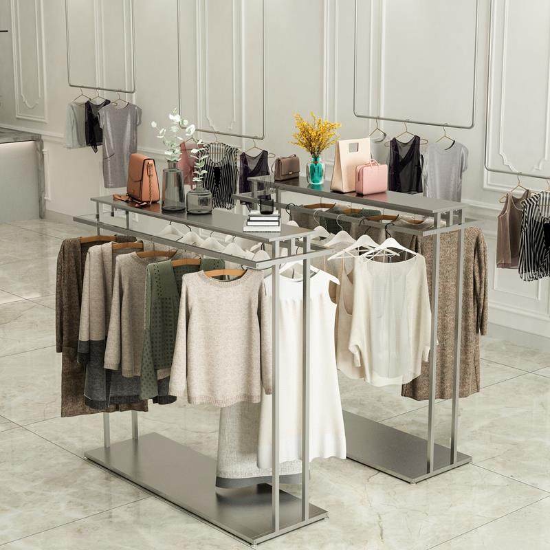ft服装店中岛展示架双排落地货架双杠挂衣架女装男装童装衣服陈列