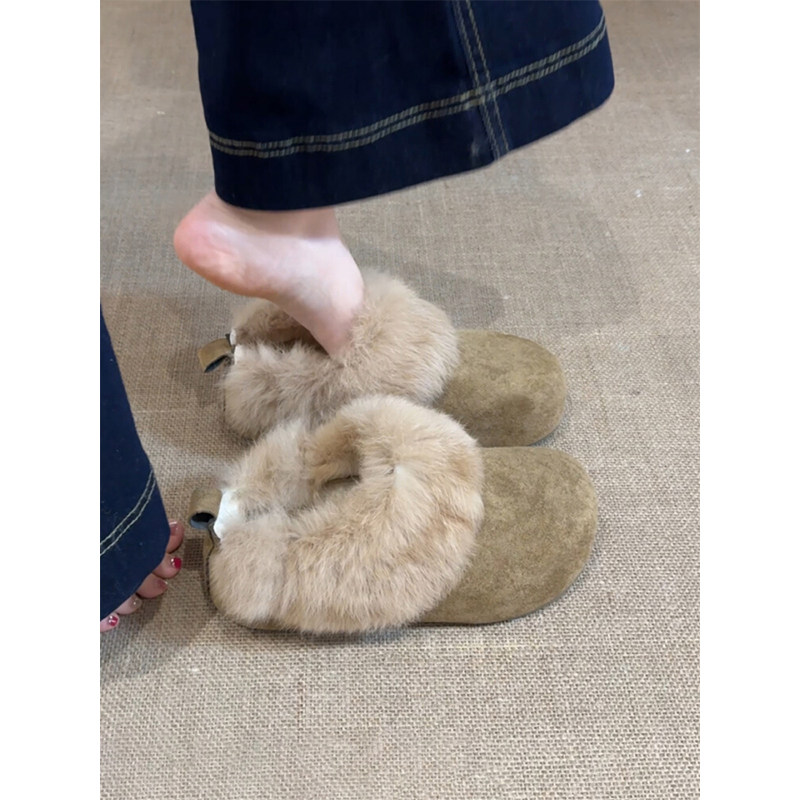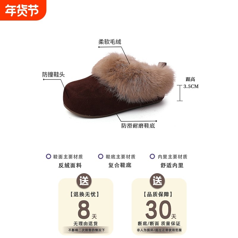 时尚部落毛毛包头棉拖鞋女冬季新款2025厚底勃肯鞋加绒雪地靴防滑