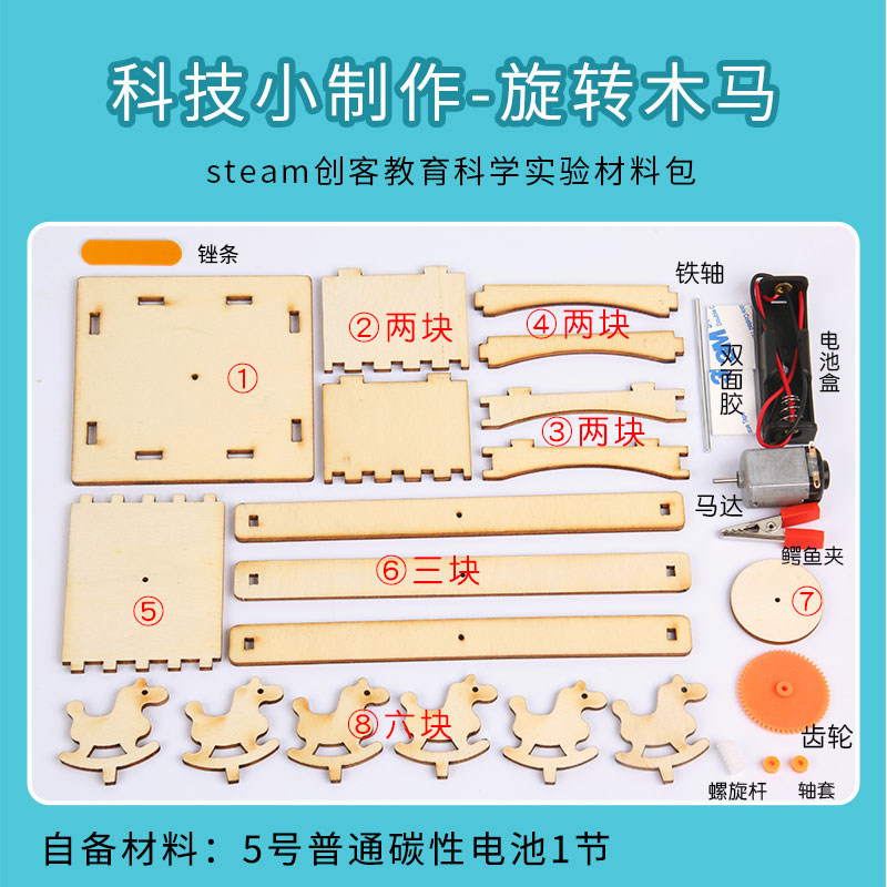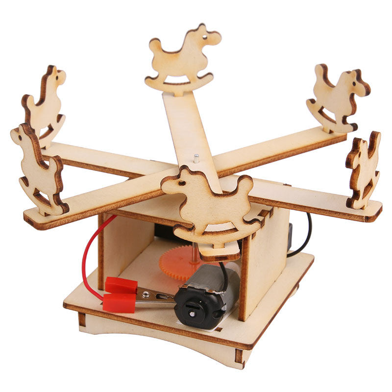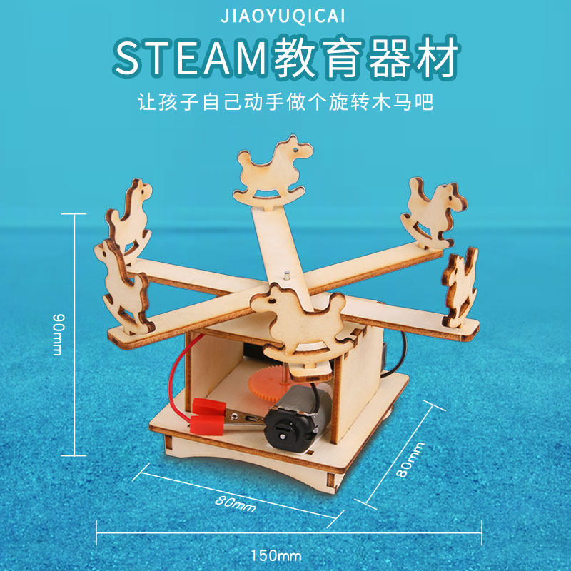 科技小制作旋转木马科学实验材料包木质拼插教具幼儿园培训器材