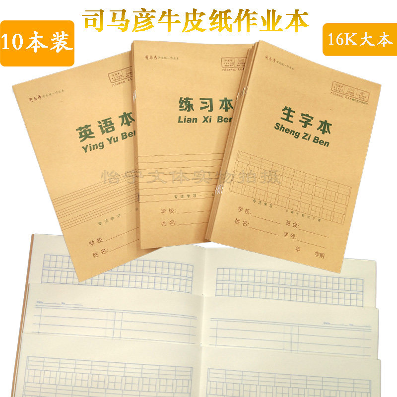 司马彦16k大号作业本加厚护眼纸张中小学生英语田格本数学本10本