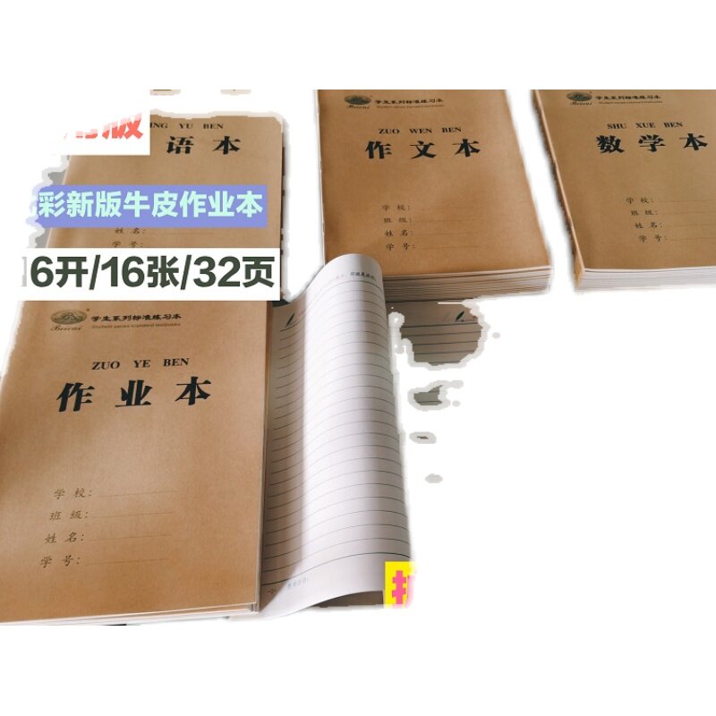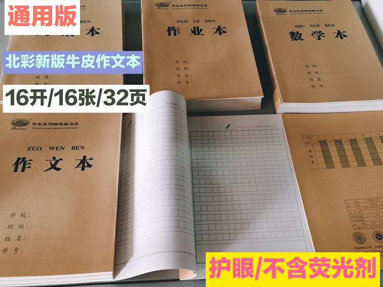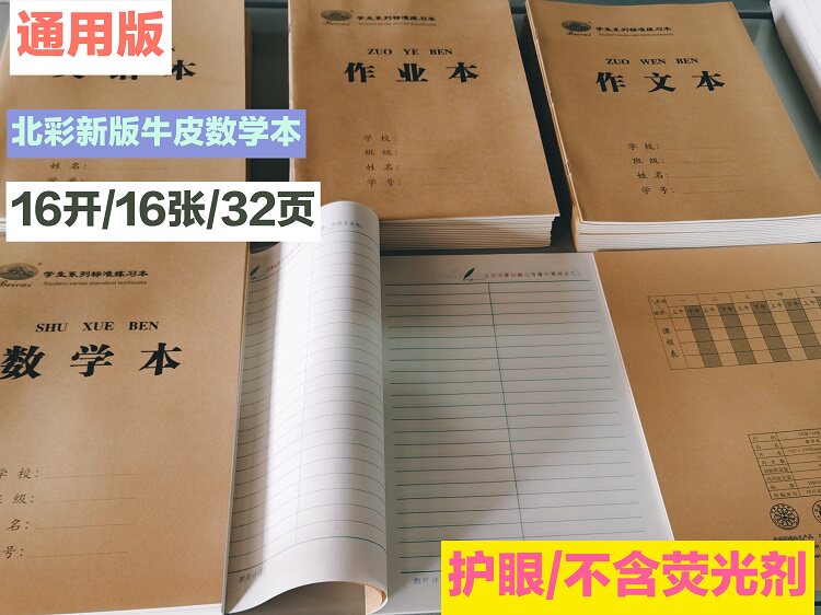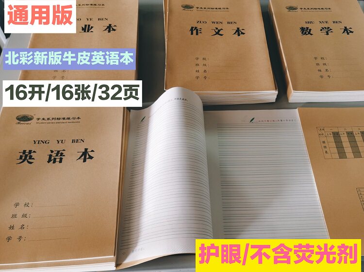 北彩新版牛皮纸学生标准作业本子侧翻无荧光剂防近视加厚纸张包邮