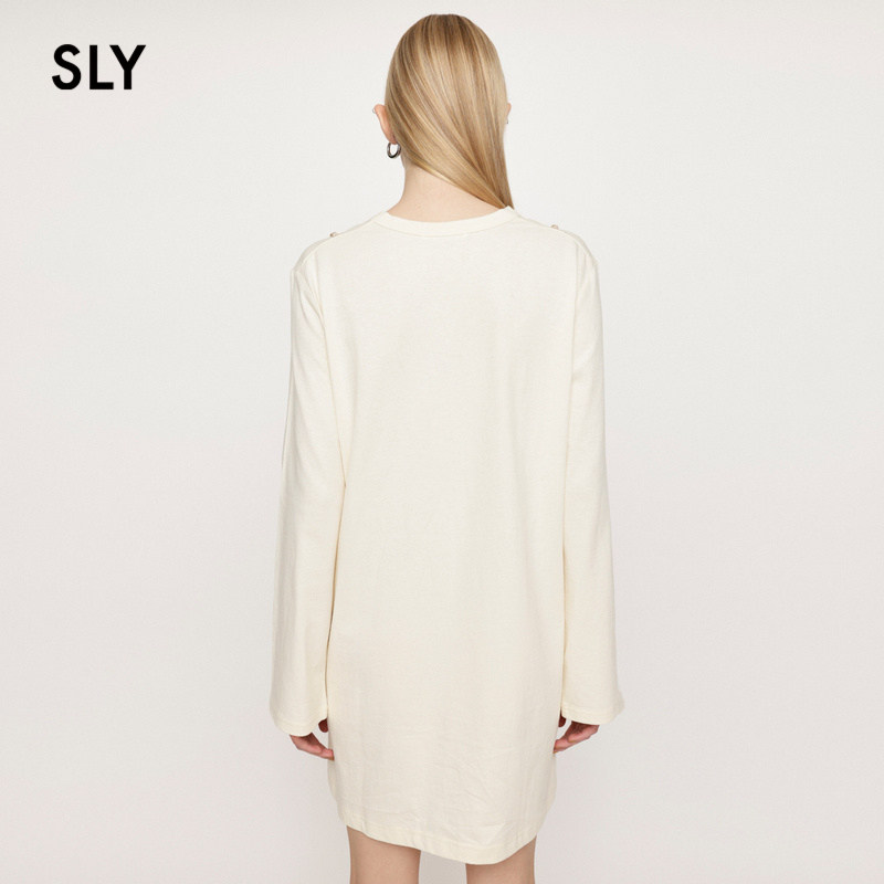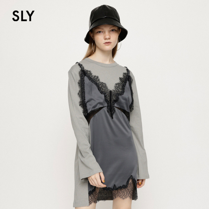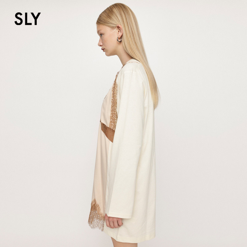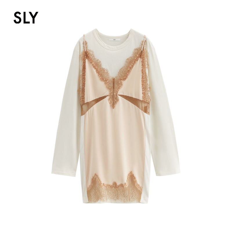 SLY 冬季新品拼接蕾丝镂空垂感T恤连衣裙女038GAZ83-4080