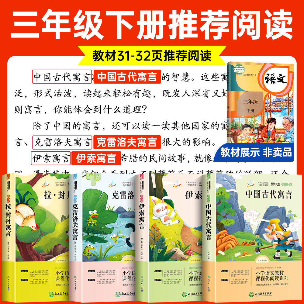 全套4册快乐读书吧三年级下册必读的课外书正版中国古代寓言故事小学生3下学期老师推荐阅读书目伊索寓言克雷洛夫拉封丹全集人教版