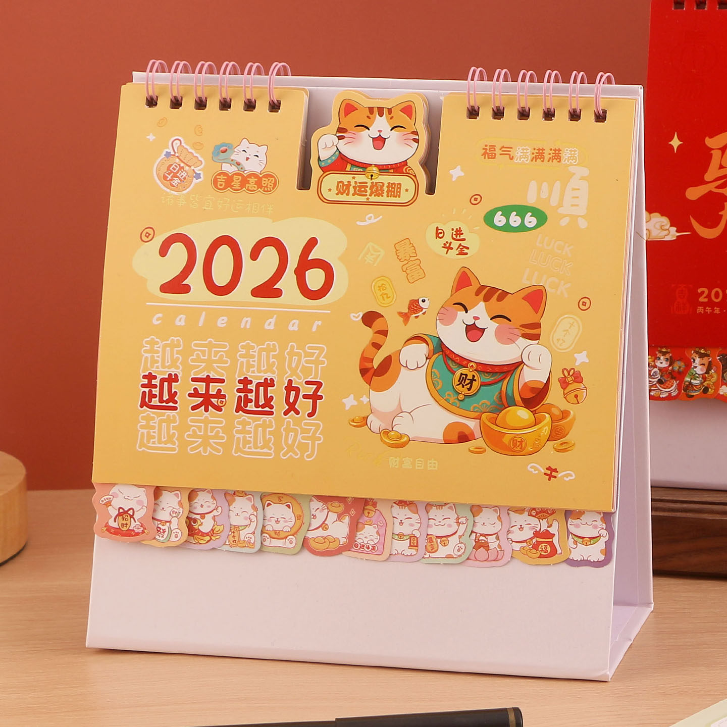 卡通台历2026马年创意简约小清新年记事本计划日历每日打卡企业办公月历学生记事桌面摆件可爱台历定制做印刷