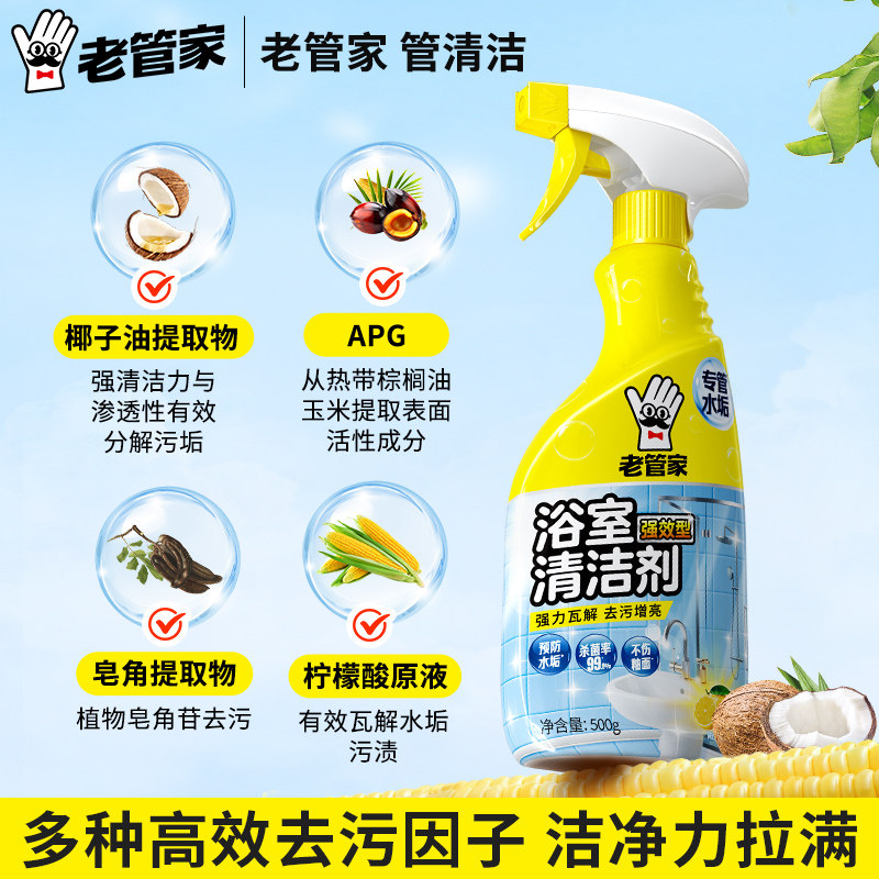 老管家浴室清洁剂玻璃瓷砖水垢强力去污卫生间清洗神器墙面洗衣机