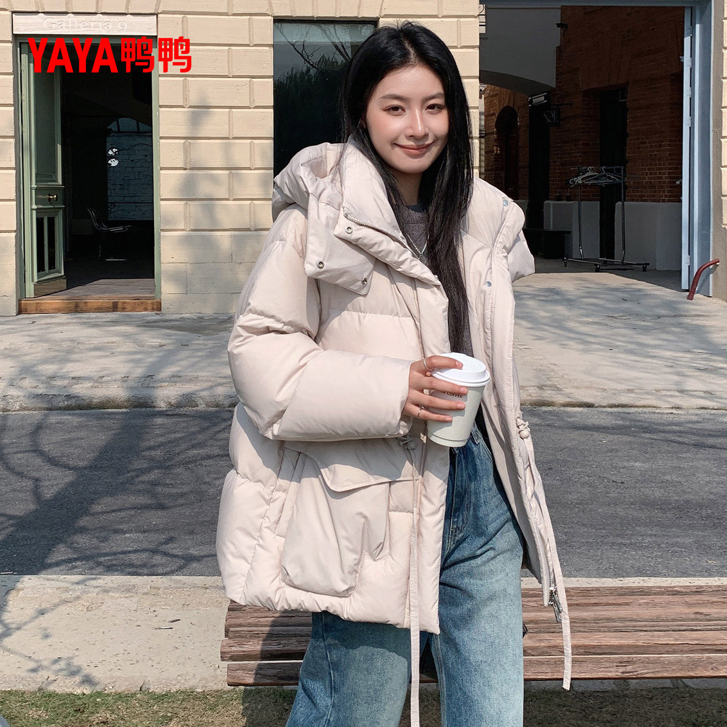 鸭鸭2025秋冬新款立领短款羽绒服小个子女冬多巴胺连帽可拆帽外套