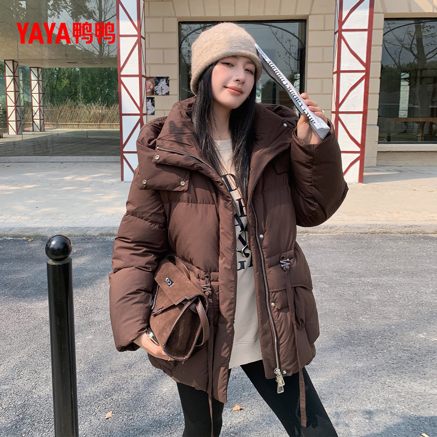 佟丽娅明星同款鸭鸭轻薄羽绒服女2025冬新款保暖连帽休闲内胆外套