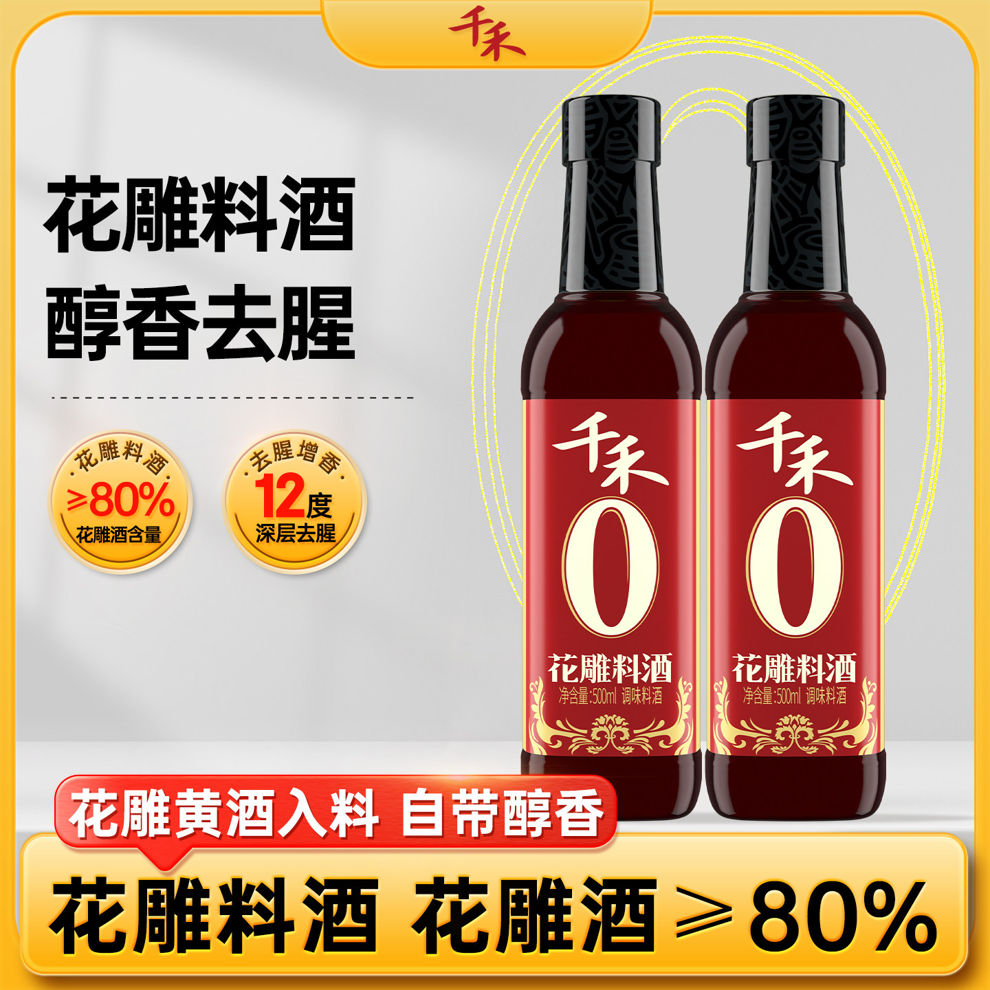 千禾花雕料酒500ml/瓶正品家用深层醇香去腥花雕黄酒蒸煮纯粮酿造
