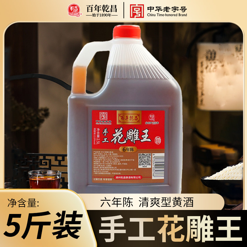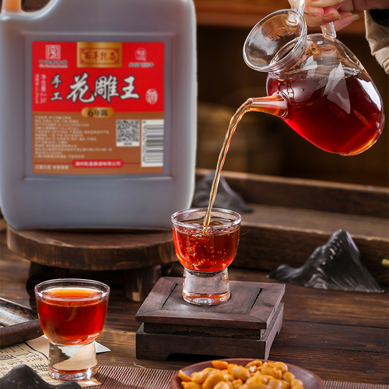 花雕王黄酒2.5L六年陈酿老酒家用料酒老字号酿酒手工阿胶桶装百年