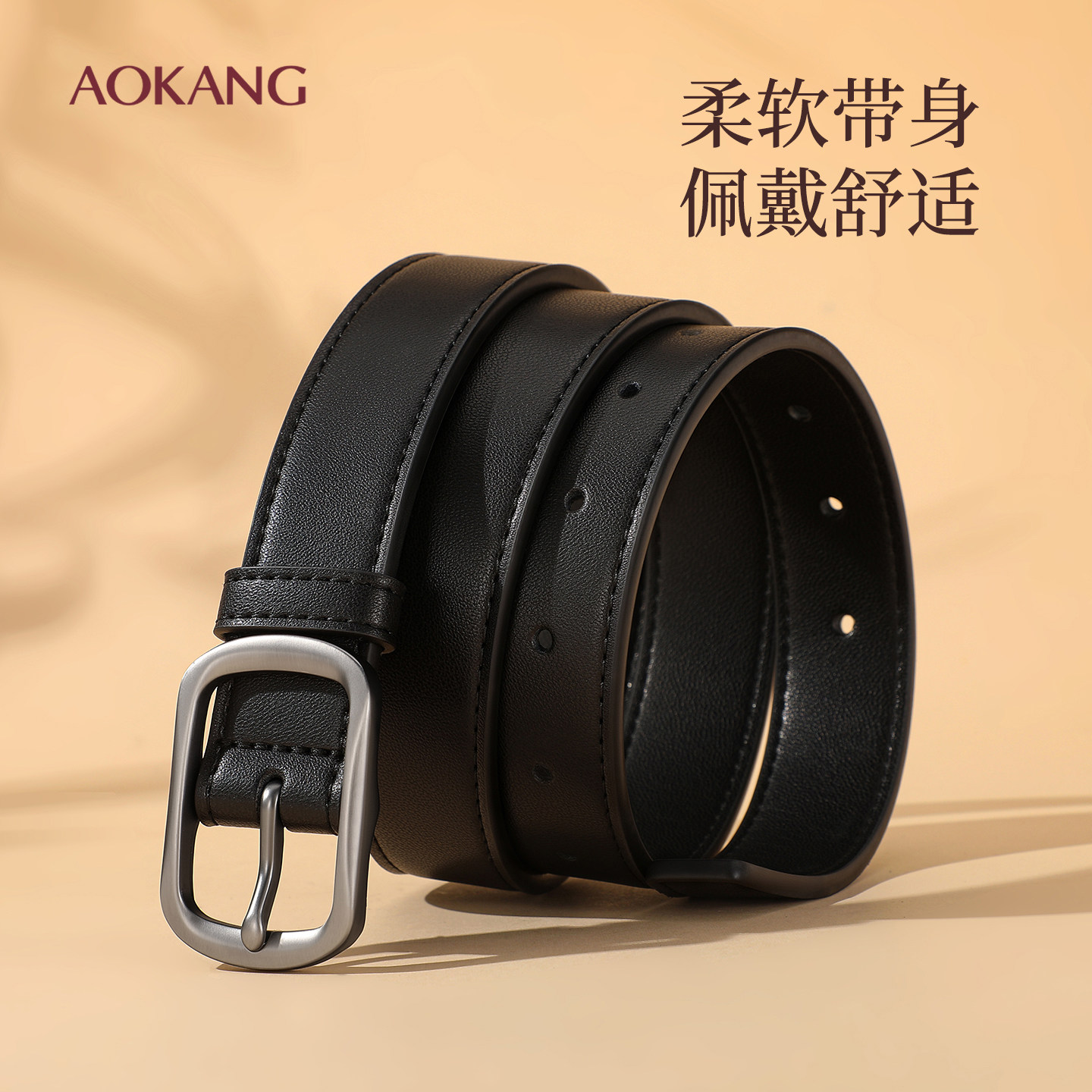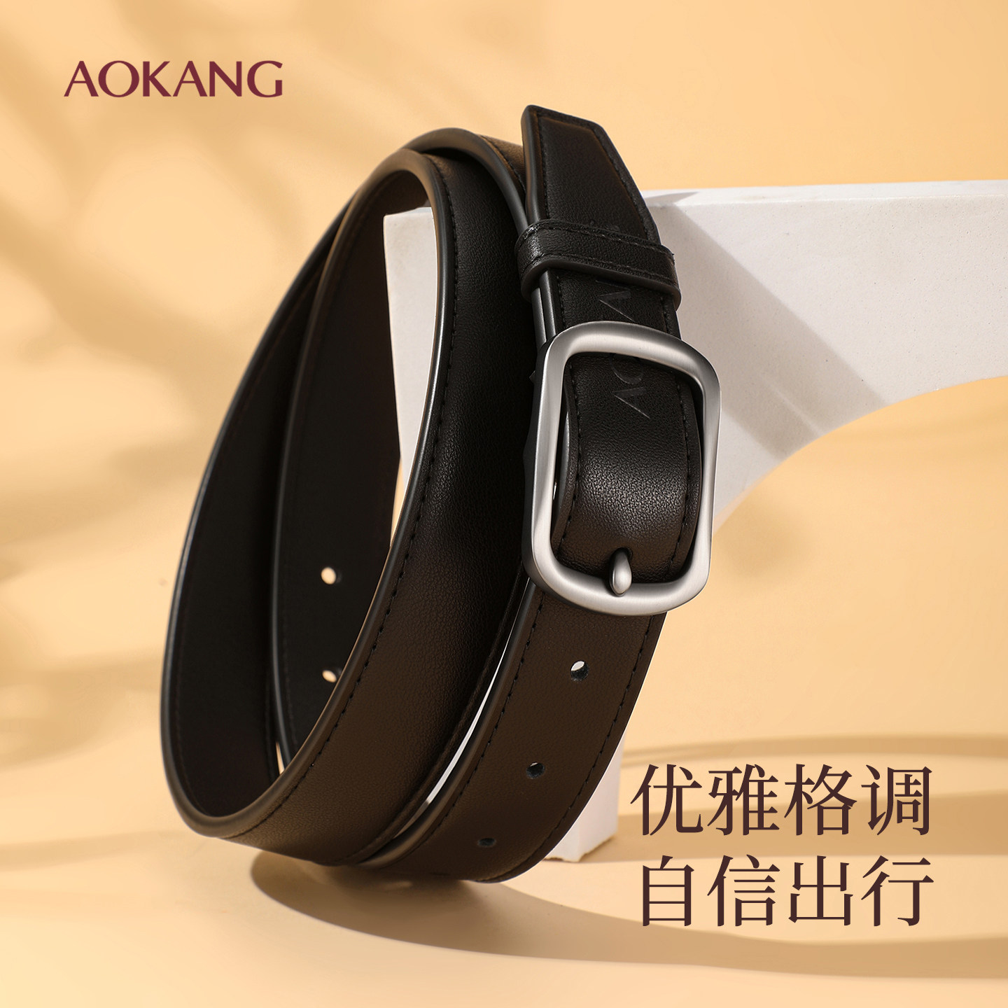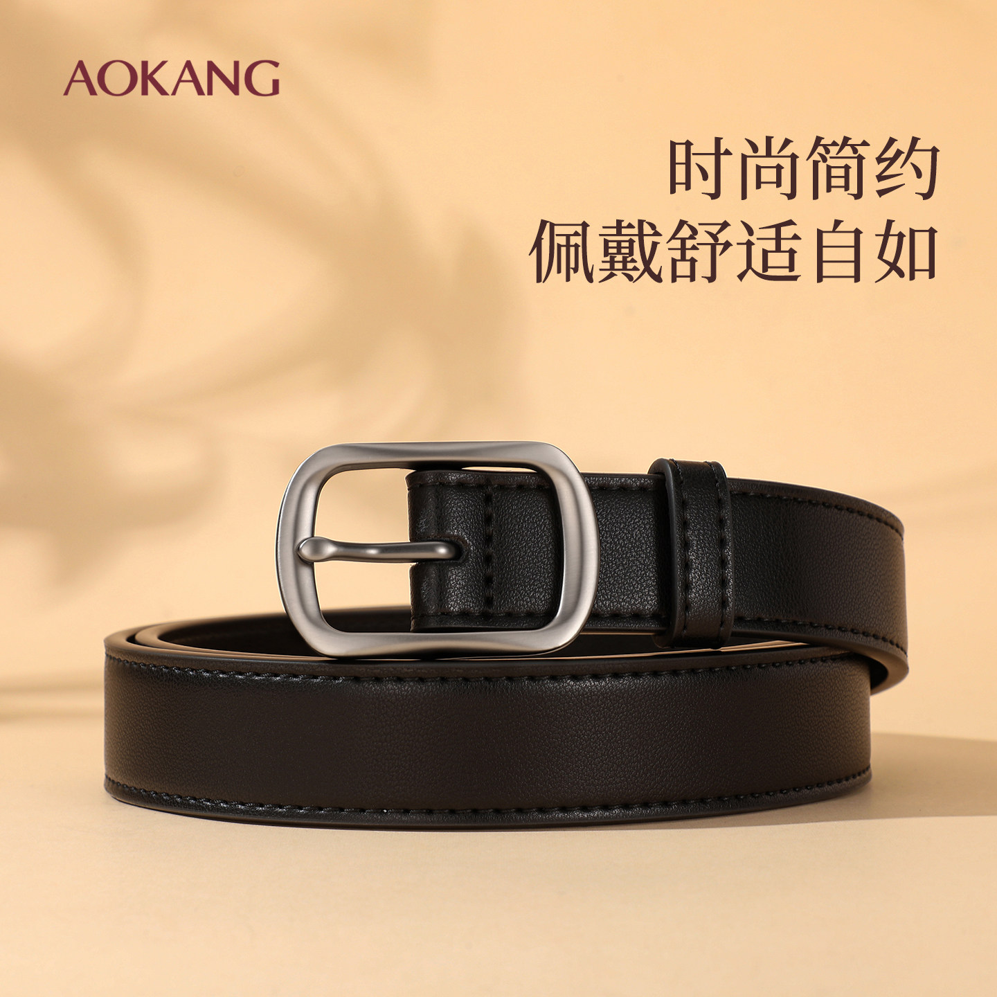 奥康皮带女款2025新款百搭牛皮真皮腰带装饰针扣时尚配牛仔裤带J