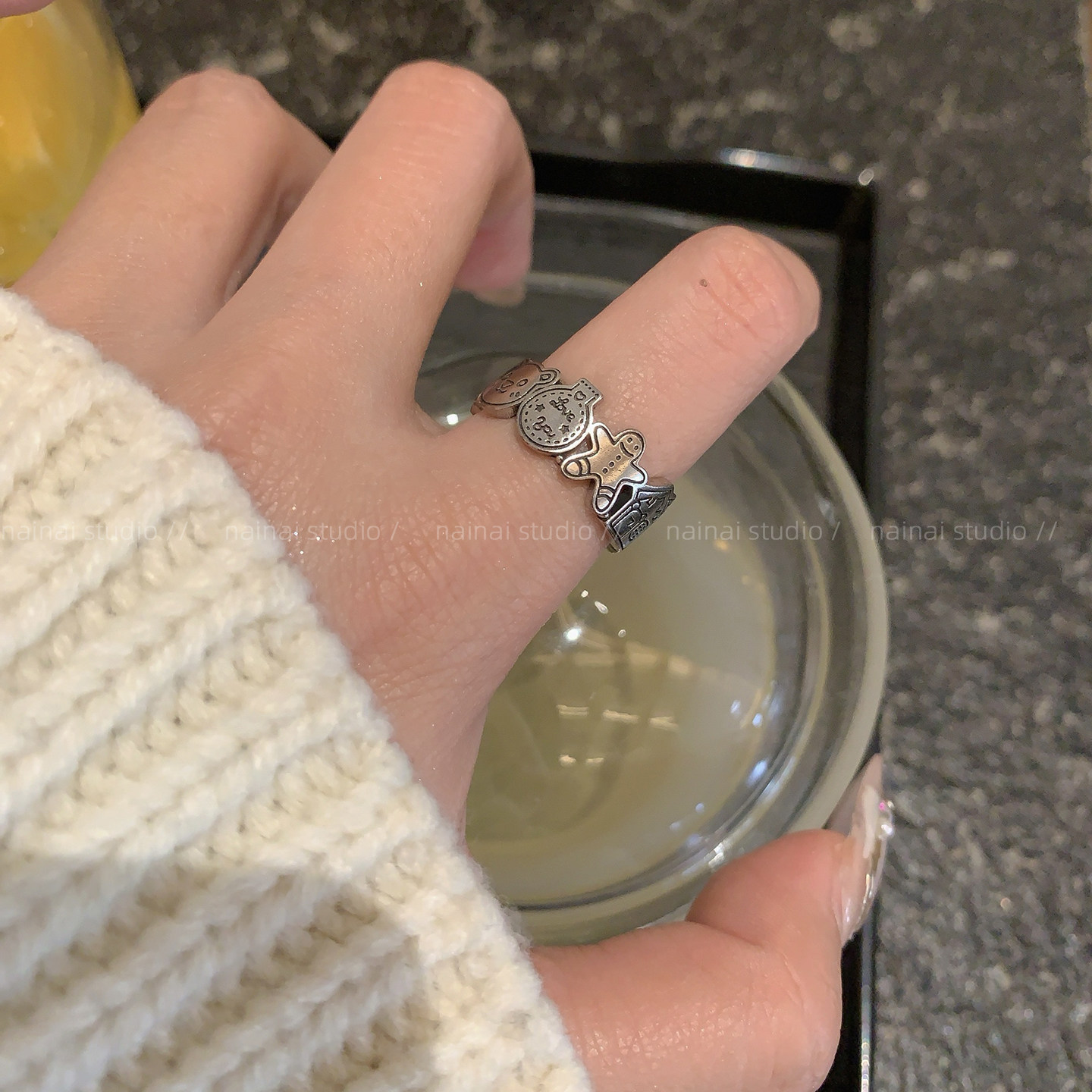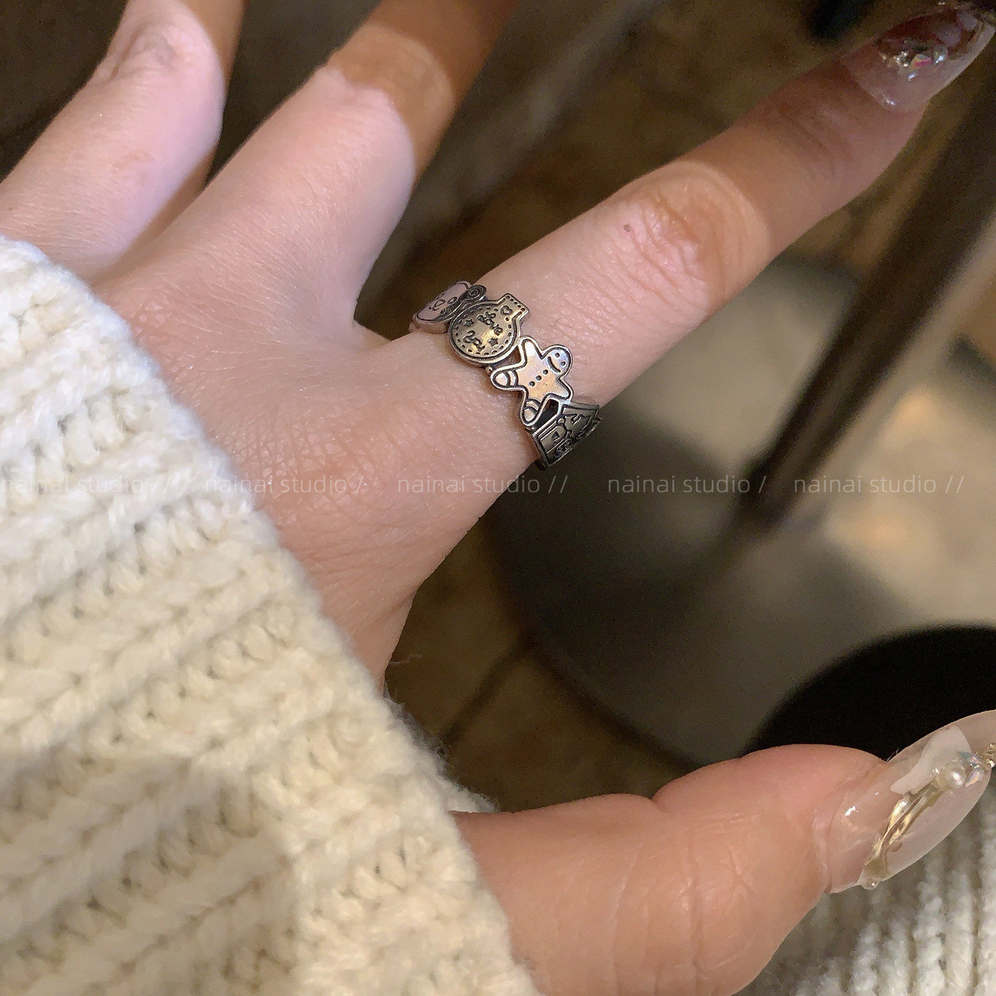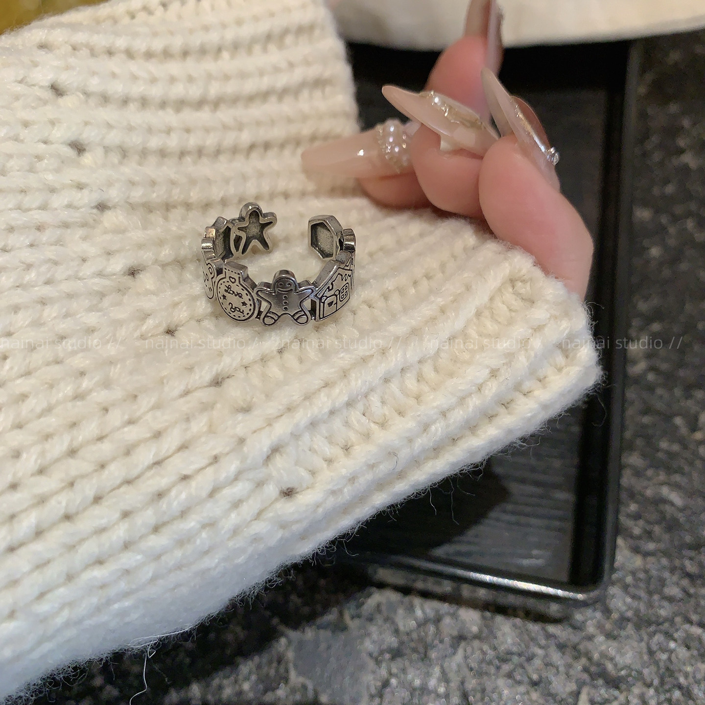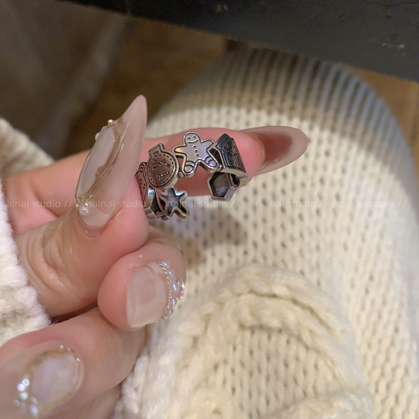 姜饼人戒指~圣诞节做旧可爱星星独特食指戒小众设计高级感指环女A