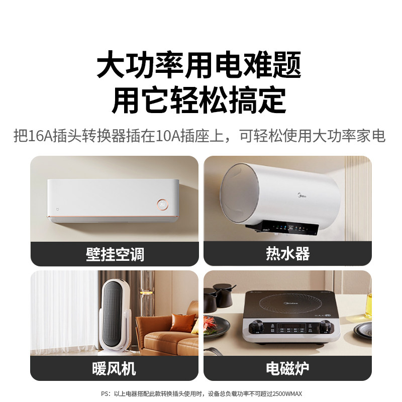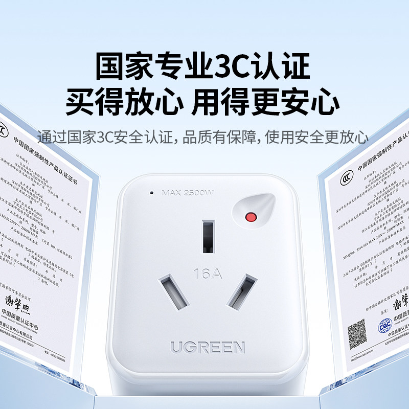 绿联转换插头10A转16A转换器家用空调热水器插座多用扩展过载保护