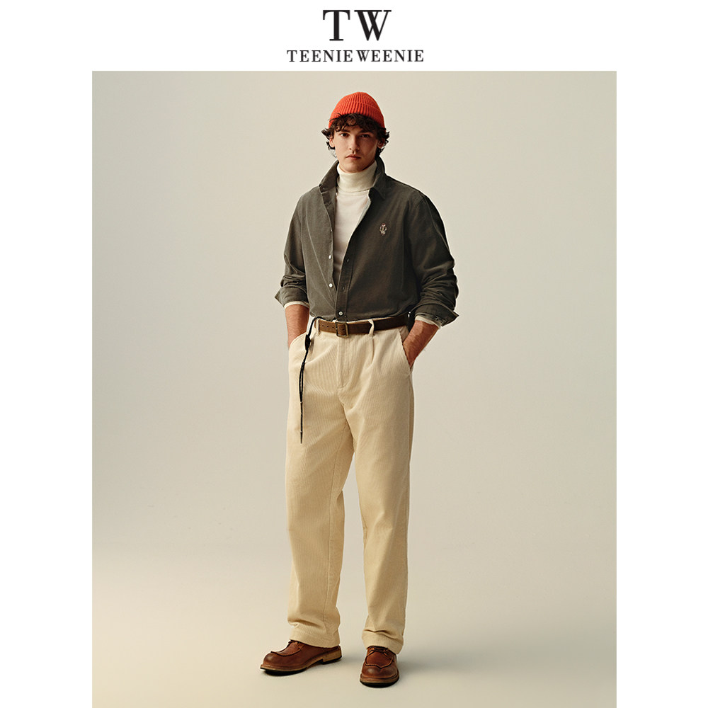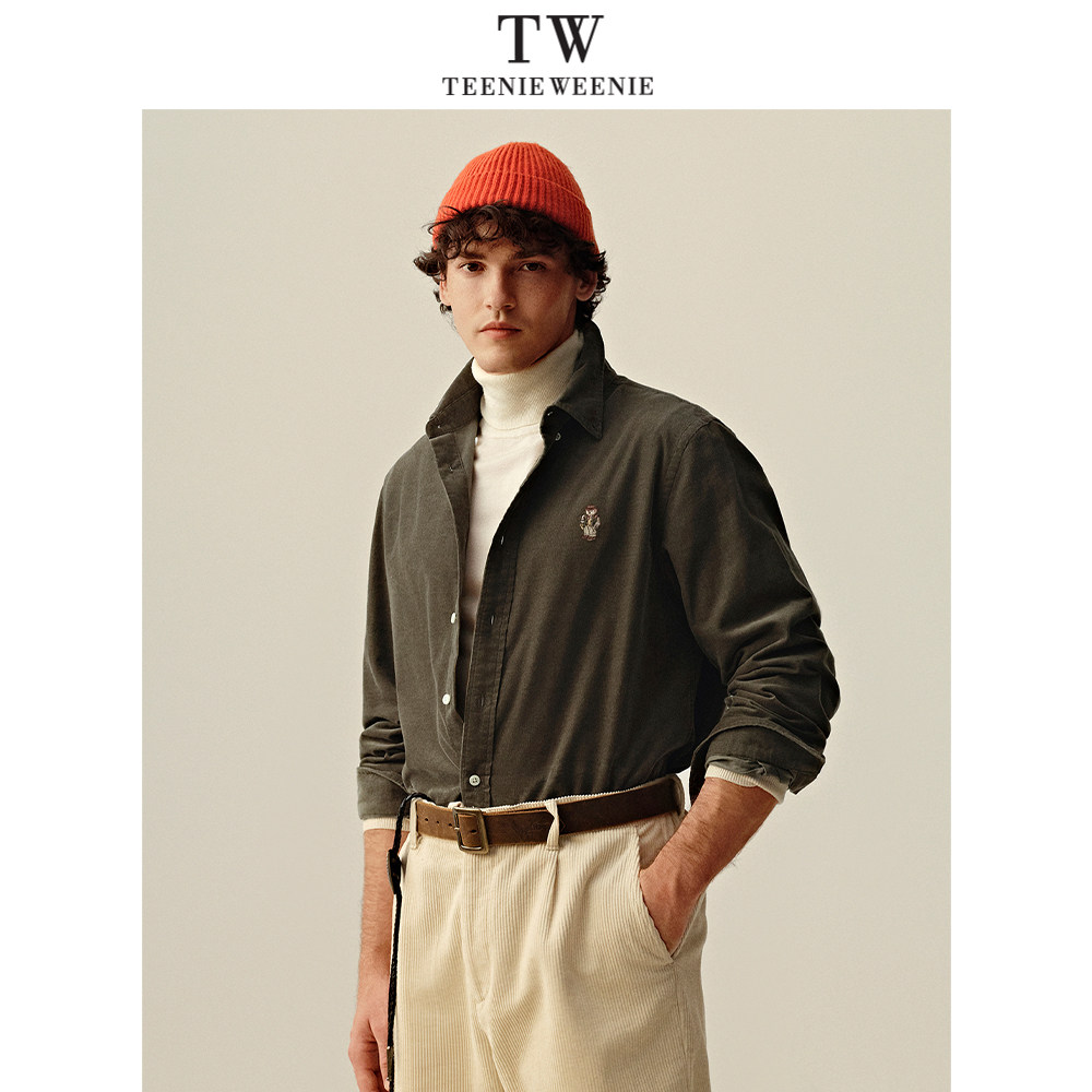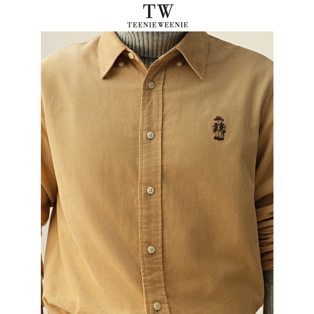 Teenie Weenie小熊男装站立小熊刺绣内搭外穿复古简约通勤衬衫