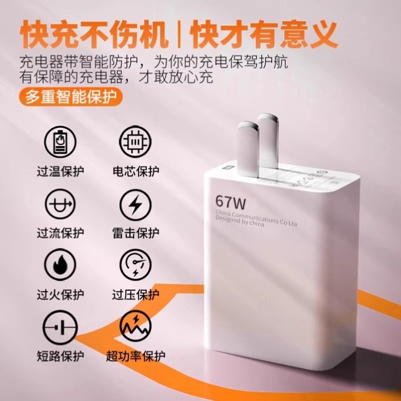 适用于小米67W极速快充头红米K50充电器14/13Pro原装正品120W手机6A超级闪充充电线套装加长