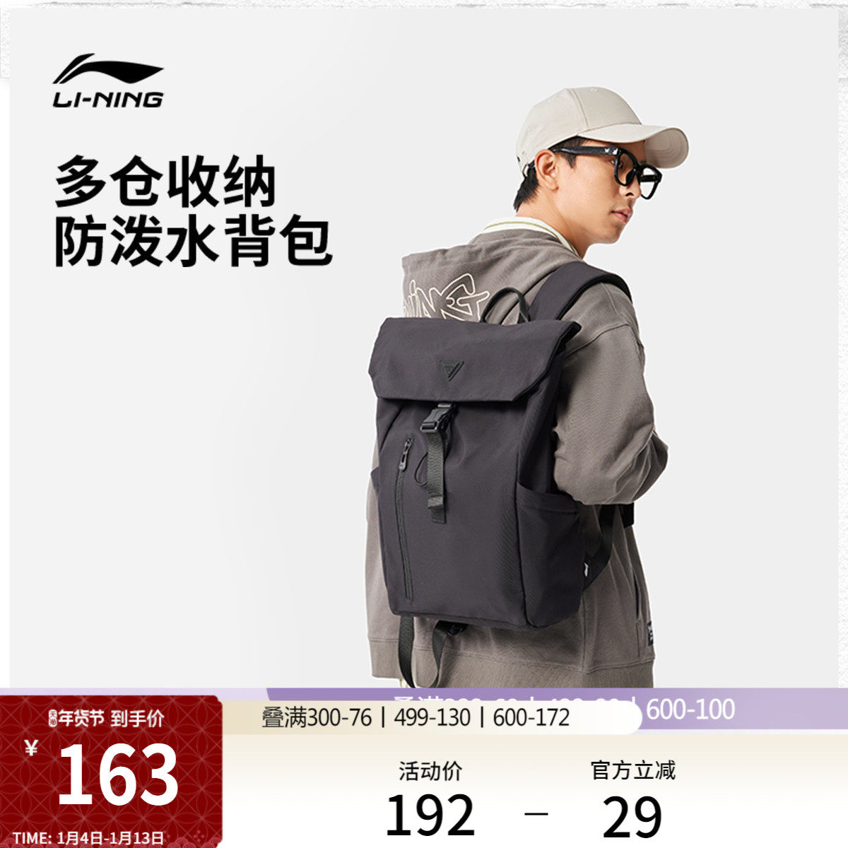 李宁双肩包男女户外防泼水徒步旅行背包学生通勤书包登山运动包