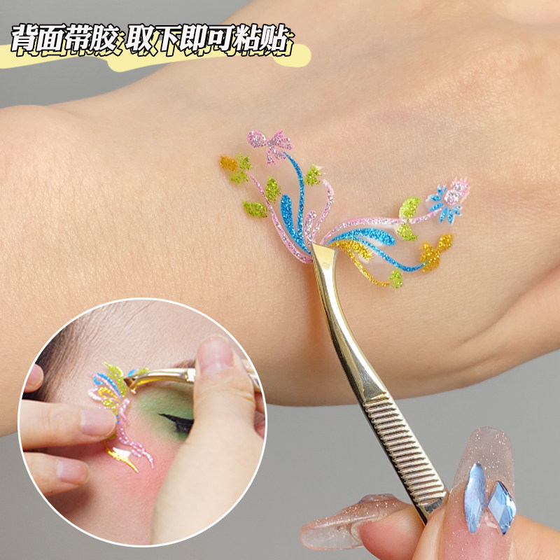 元旦表演妆容贴纸儿童脸部贴花脸上舞台妆脸贴化妆眼角贴画演出面部彩绘模版眉心贴女孩图案自粘彩妆六一专用