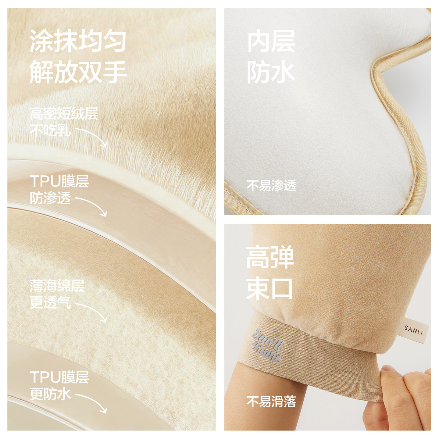 三利涂抹身体乳手套短绒不吃乳擦素颜霜防晒霜美黑油懒人工具神器