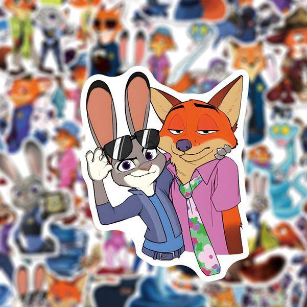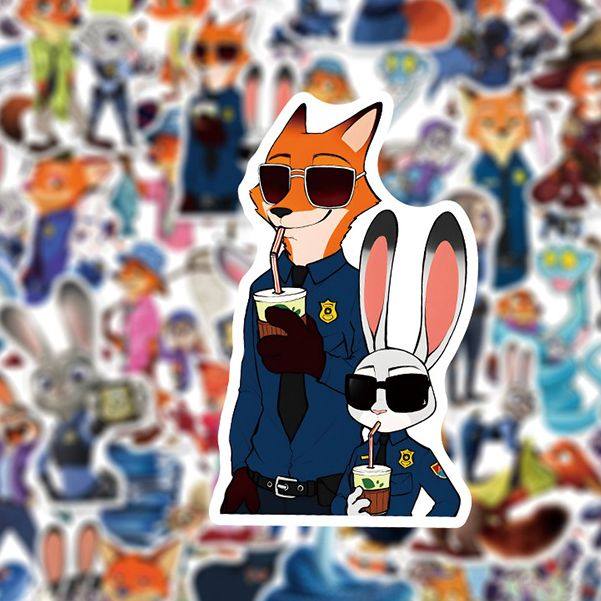 100张疯狂动物城卡通动漫可爱兔子朱迪尼克周边贴画diy桌面手机壳