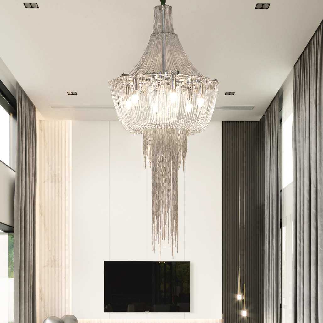 现代轻奢创意式吊灯客厅别墅大厅酒店复式楼梯吊灯设计师流苏吊灯
