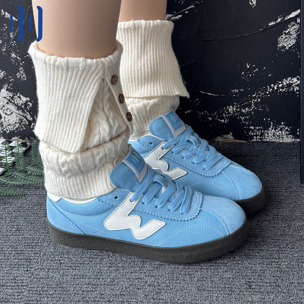 顽刻官方海军蓝春季校园风W系列翻毛皮帆布拼接男女国潮滑板鞋